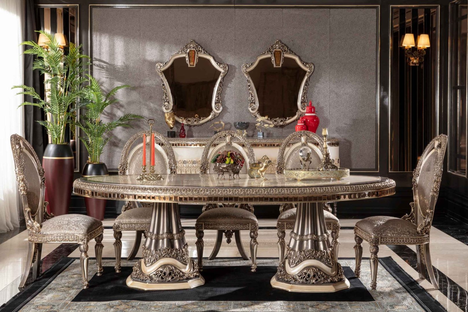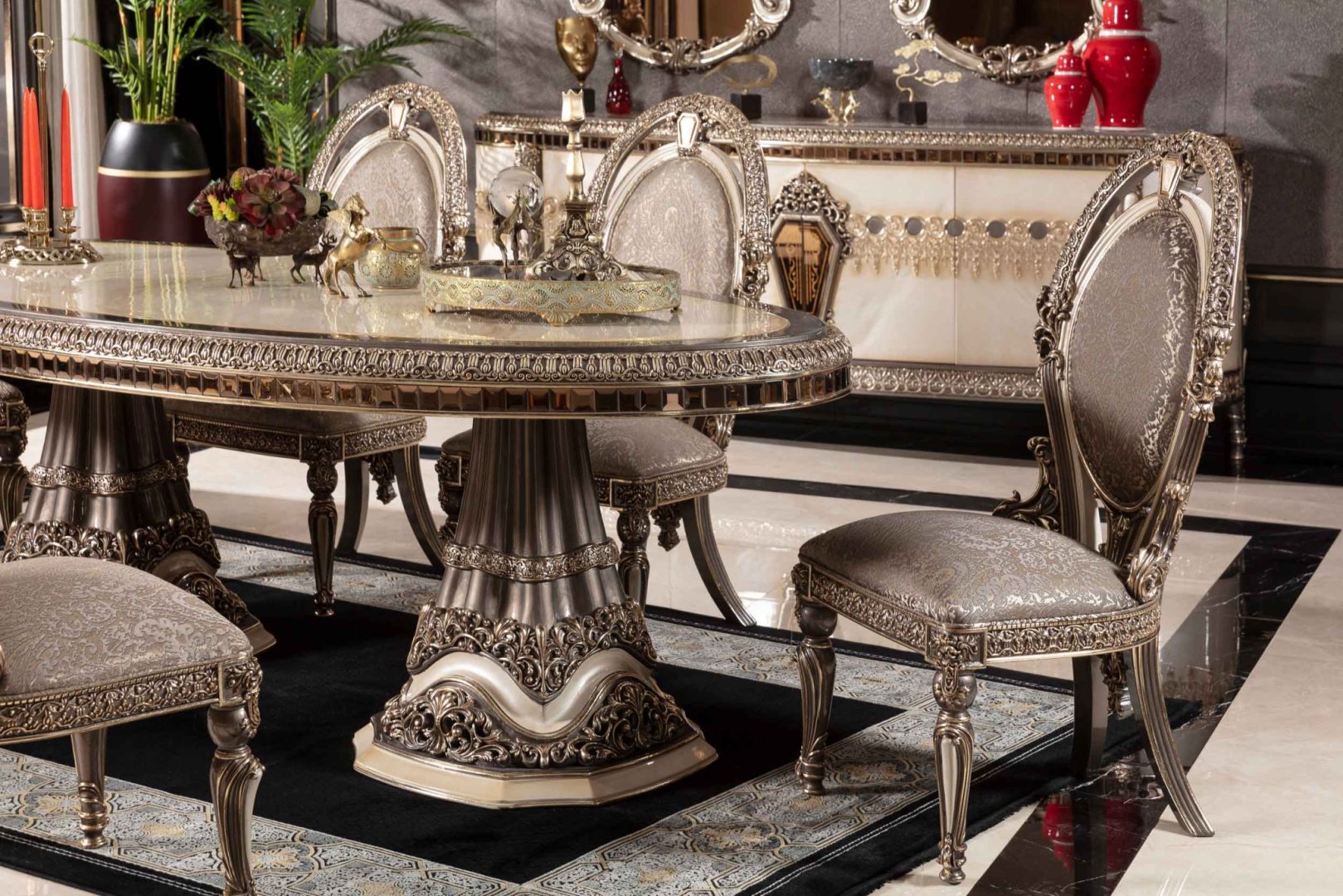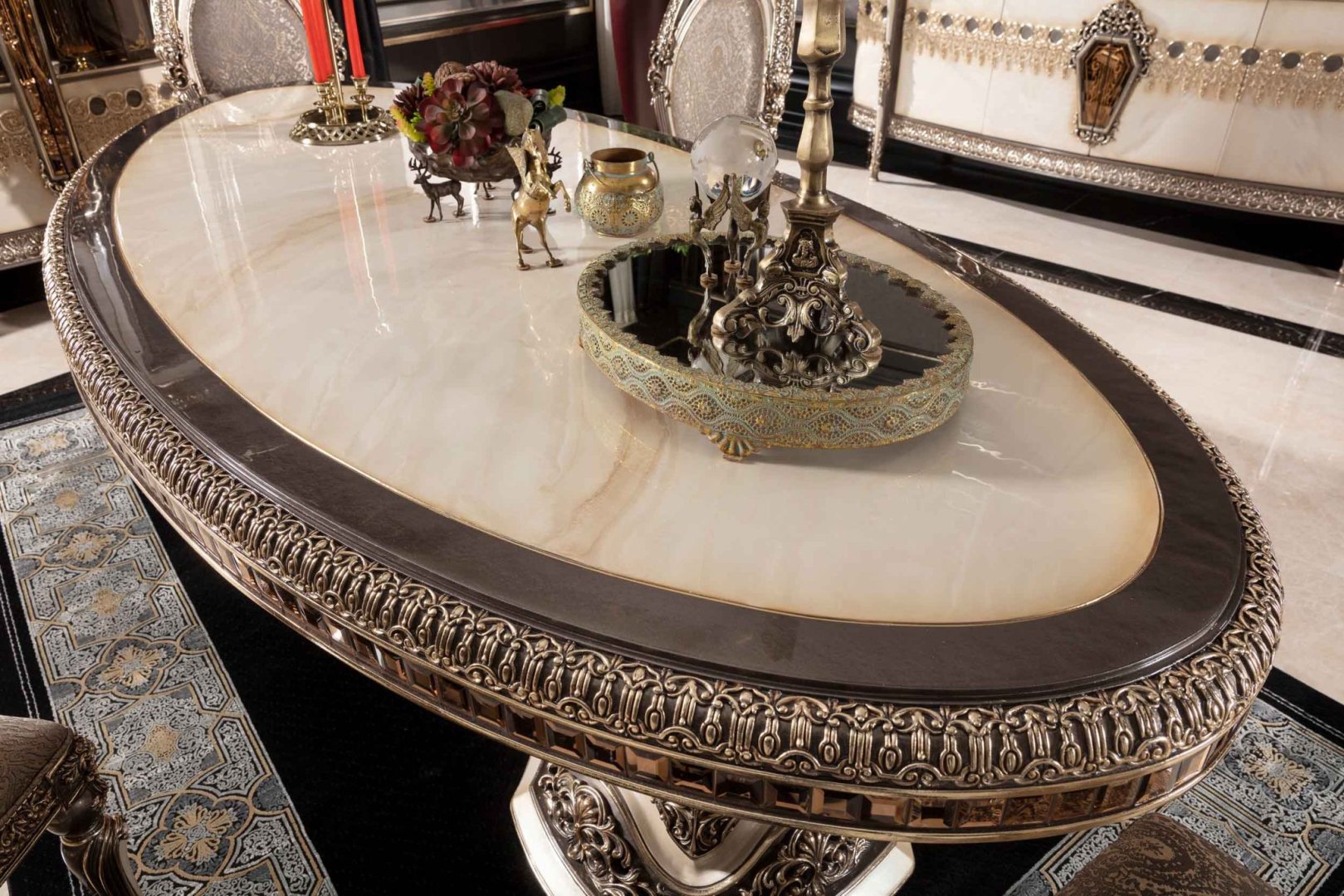 Gloria Luxury Yemek Odası, ölçü dengesi, malzeme kalitesi ve sade çizgileriyle yaşam alanlarına şık ve bütüncül bir karakter kazandırır.
