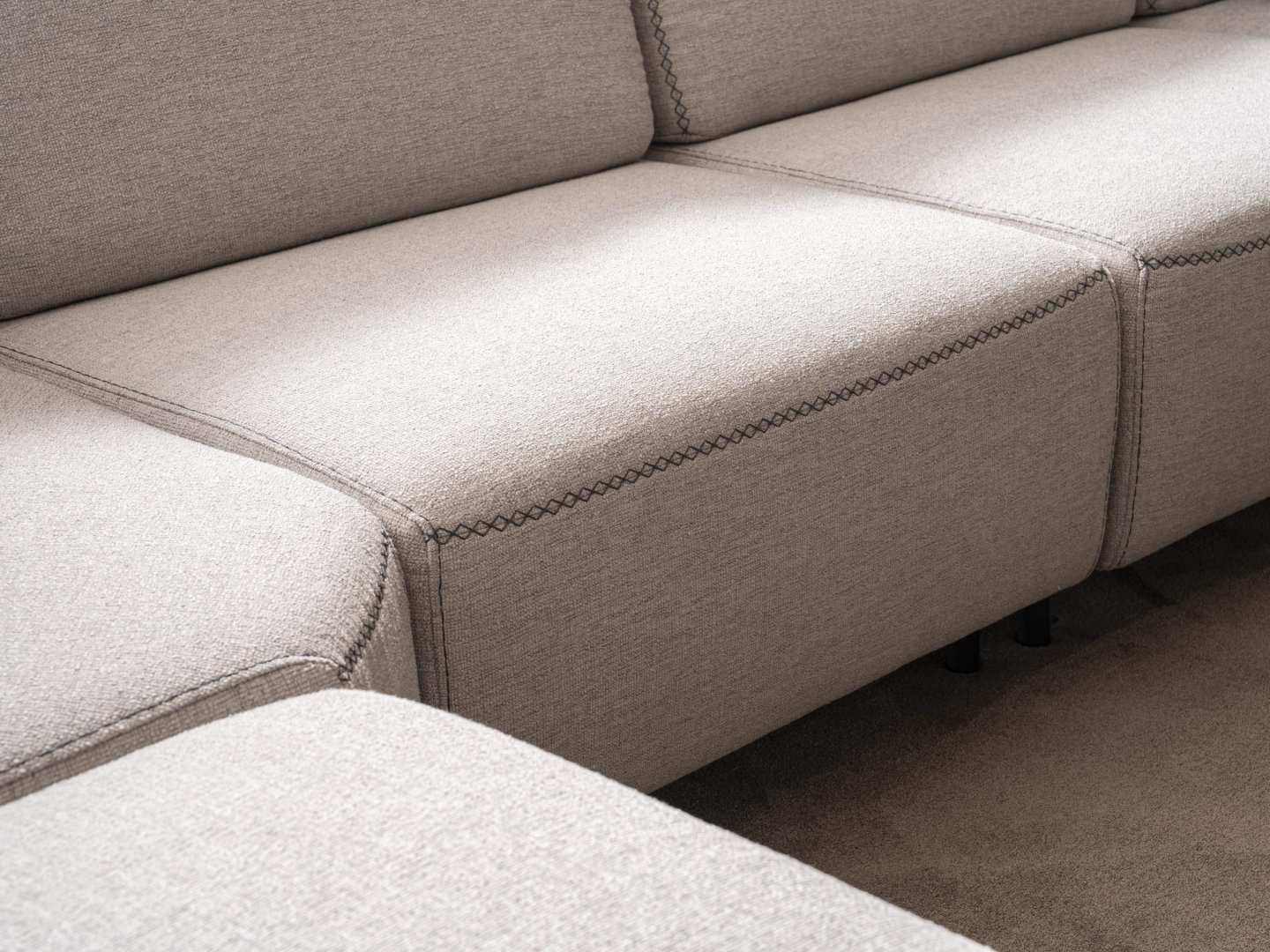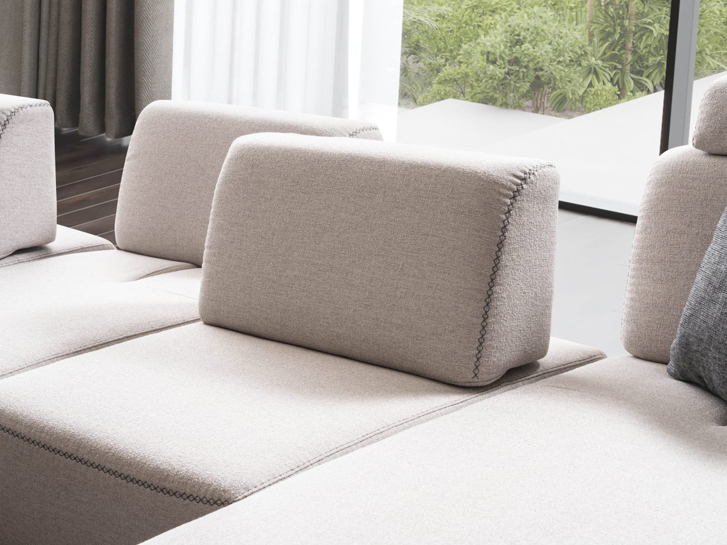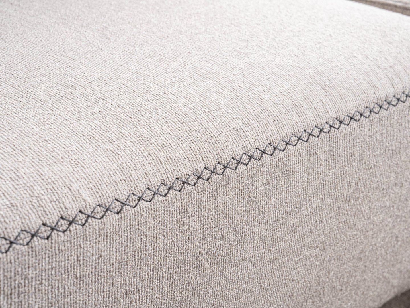 Oturum alanı, konforu destekleyen dengeli derinlik oranlarıyla tasarlanmıştır. Sırt yapısı mekânı baskılamadan destek verirken, köşe geçişi kesintisiz bir akış hissi yaratacak şekilde ele alınmıştır. Genel siluet, modern mekânlarda aranan sade ve yumuşak görünümü korur.
