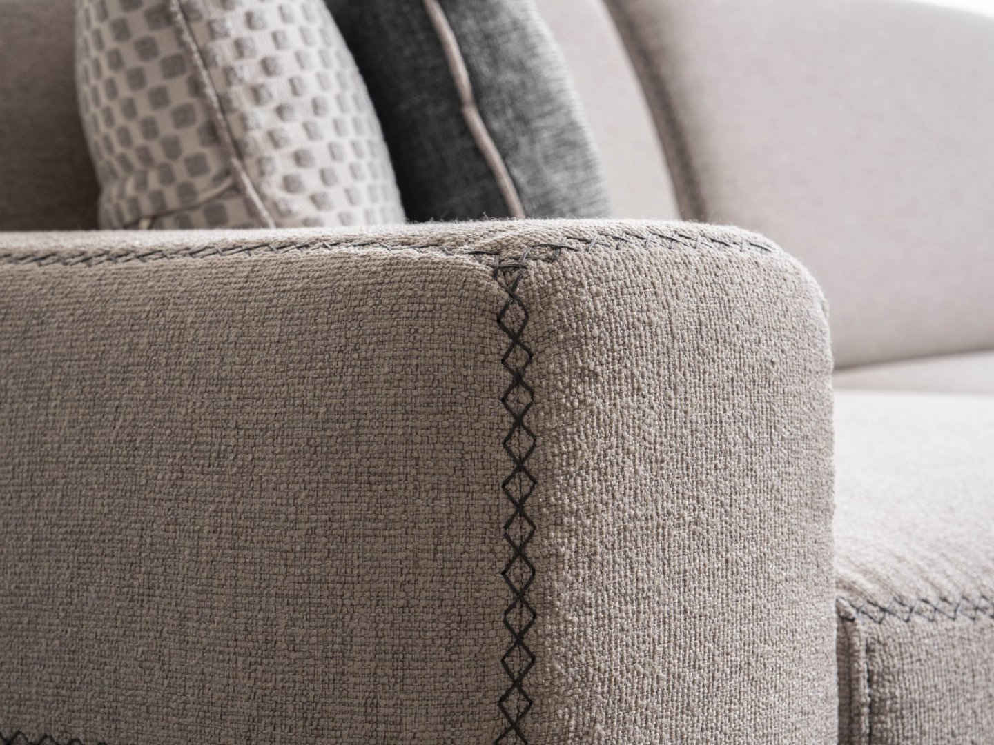 Leylak Köşe Takımı, modern salon dekorasyonu içinde mekâna sakin bir merkez kazandırır. Açık plan yaşam alanlarında doğal bir bütünlük sağlar, daha kompakt salonlarda ise alanın daha ferah algılanmasına katkıda bulunur. Yumuşak form diliyle modern köşe koltuk anlayışına zamansız ve dengeli bir yorum sunar.