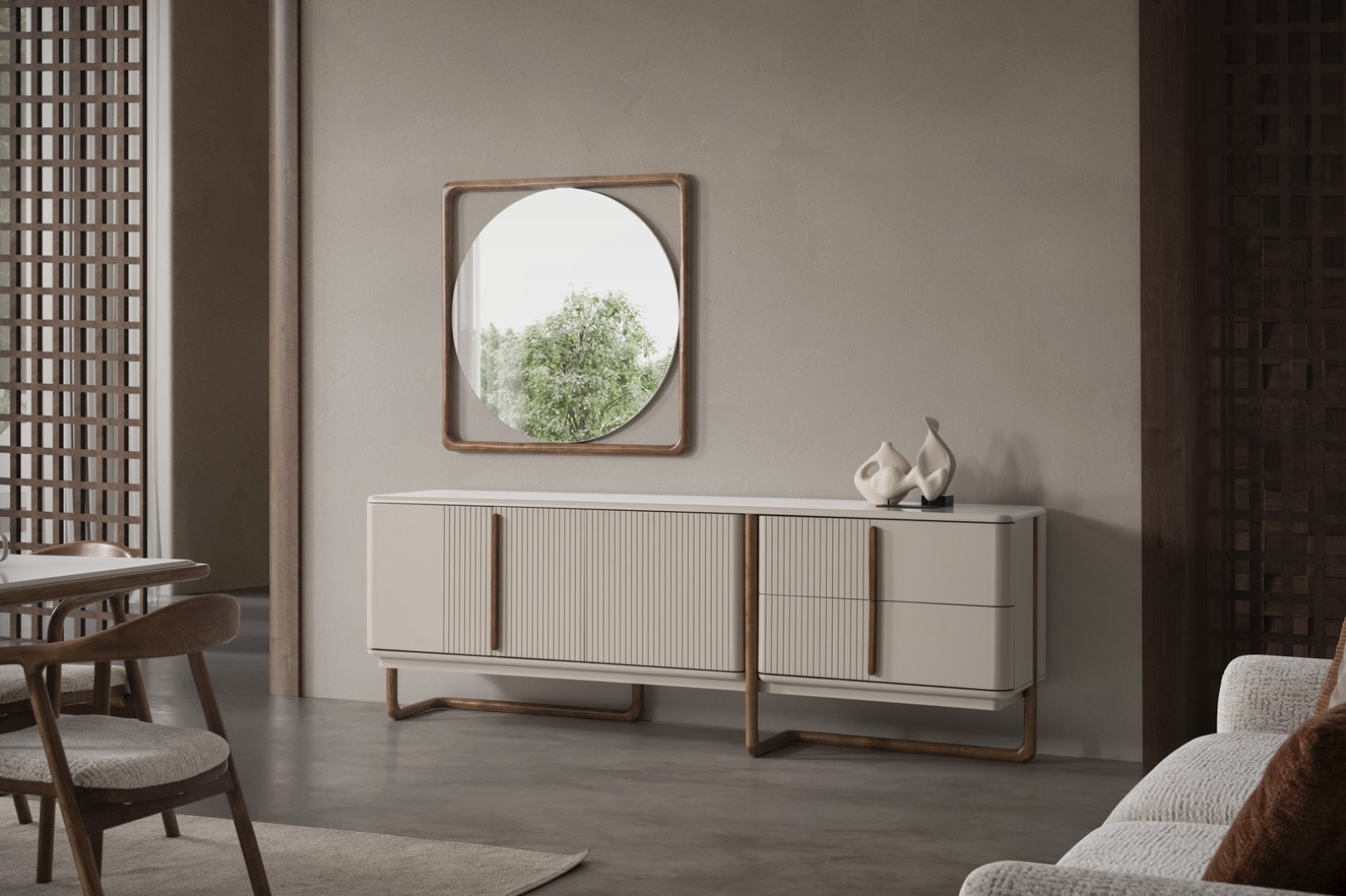 Aksa Yemek Odası, modern iç mekân tasarımında yemek alanını doğal bir odak noktası hâline getirir. Açık plan yaşam alanlarında mekânsal bütünlüğü destekler, daha kompakt alanlarda ise düzen ve ferahlık hissini güçlendirir. Oran odaklı tasarımıyla modern yemek odası anlayışına kalıcı bir yorum sunar.