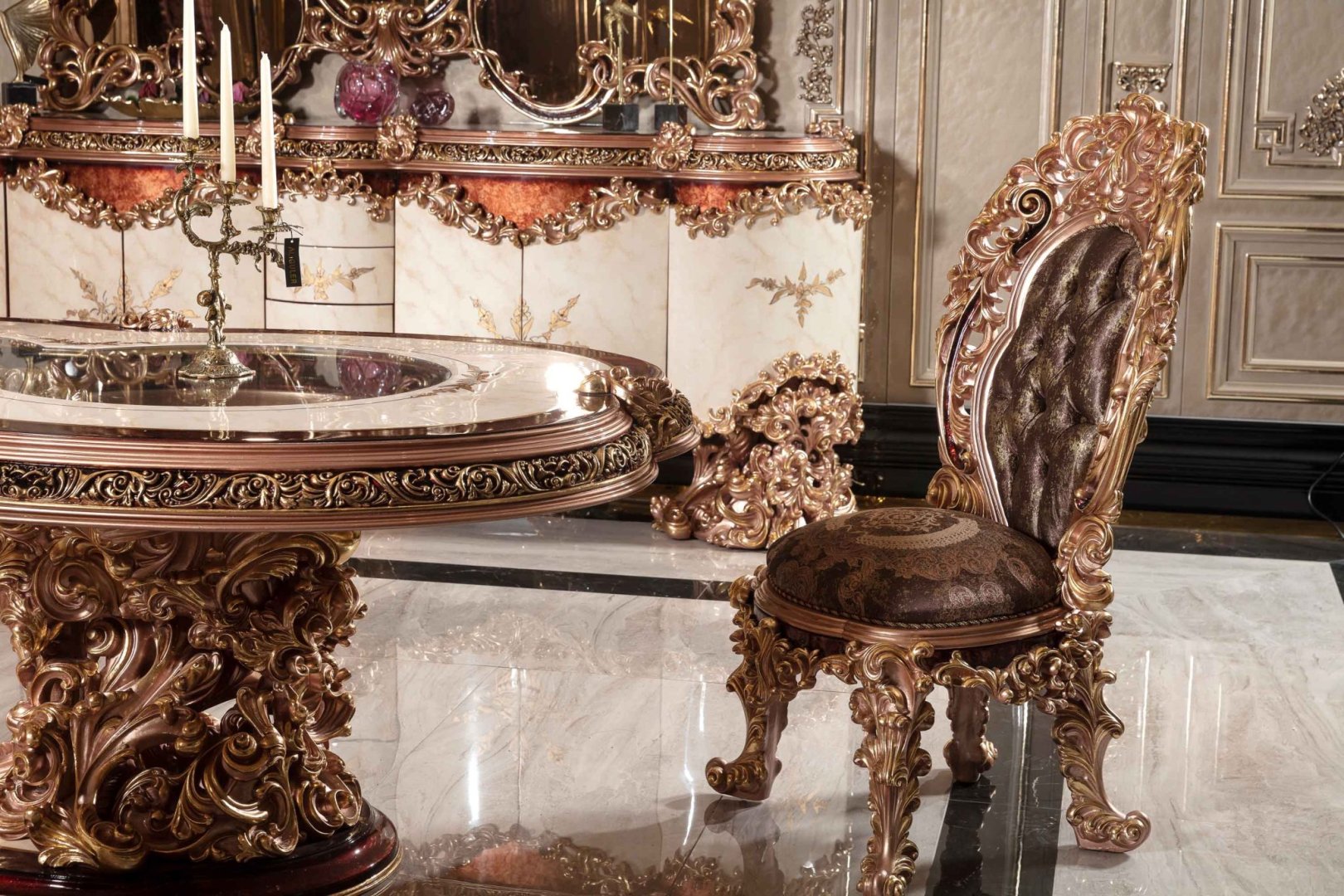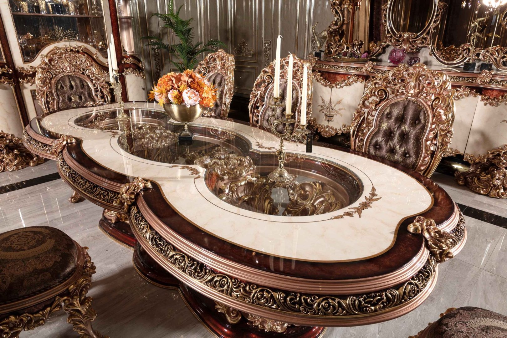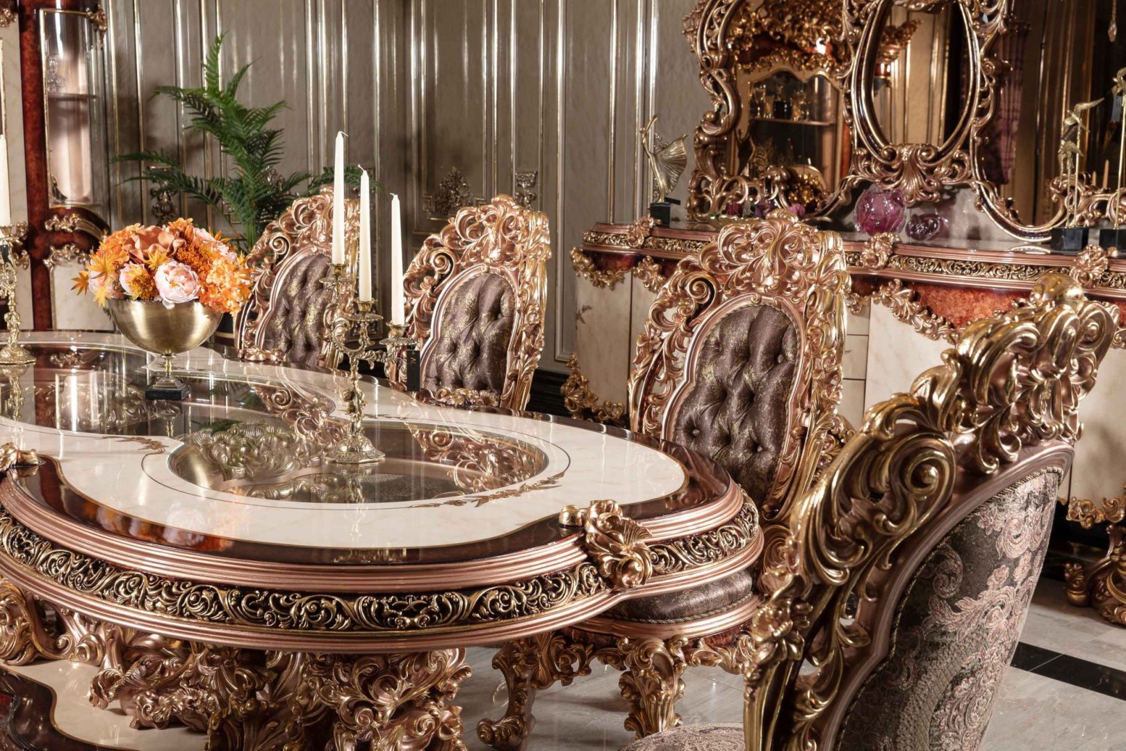 Aldabaran Klasik Yemek Odası, zamansız klasik tasarımı, güçlü form dili ve üst segment işçiliğiyle seçkin yaşam alanları için tasarlanmıştır. Dengeli oranları ve özenli detayları sayesinde mekâna asil, prestijli ve sofistike bir karakter kazandırır. Geleneksel estetik anlayışının modern üretim kalitesiyle buluştuğu Aldabaran, hem görsel bütünlük hem de uzun ömürlü kullanım sunar. Lüks klasik yemek odası arayanlar için Aldabaran, zarafet ve kaliteyi güçlü bir duruşla birleştirir.