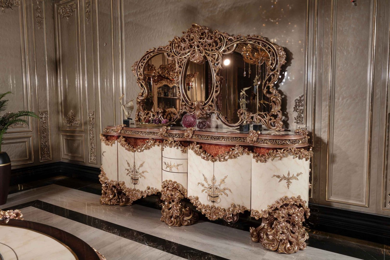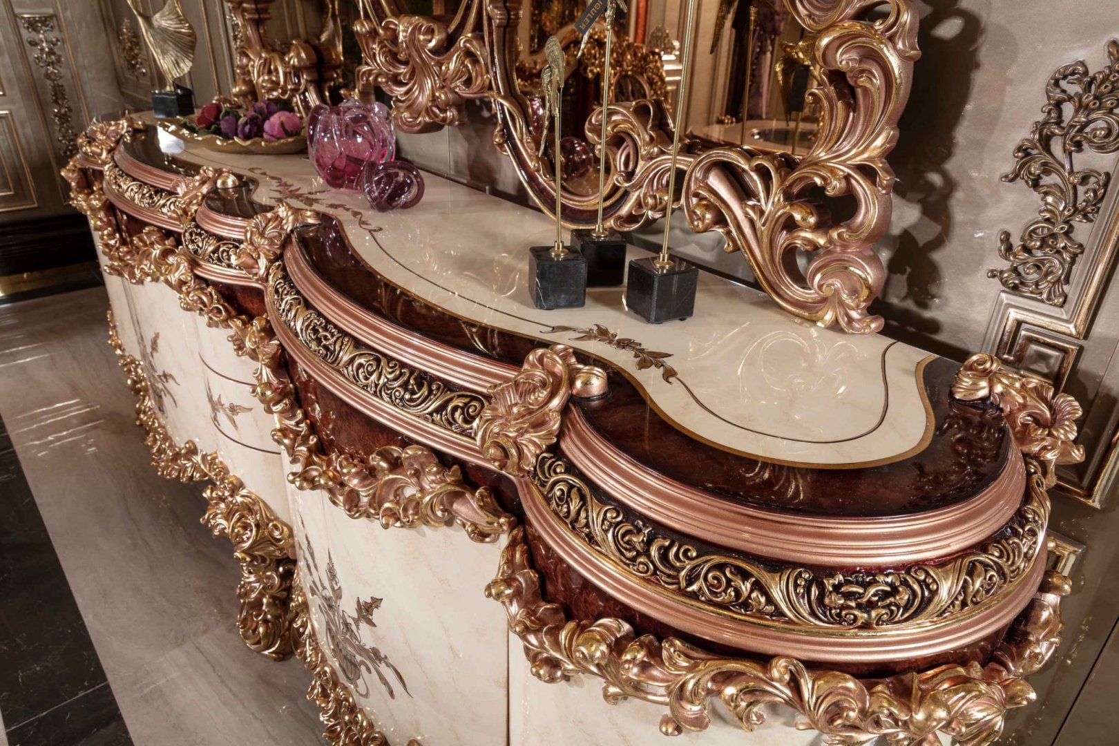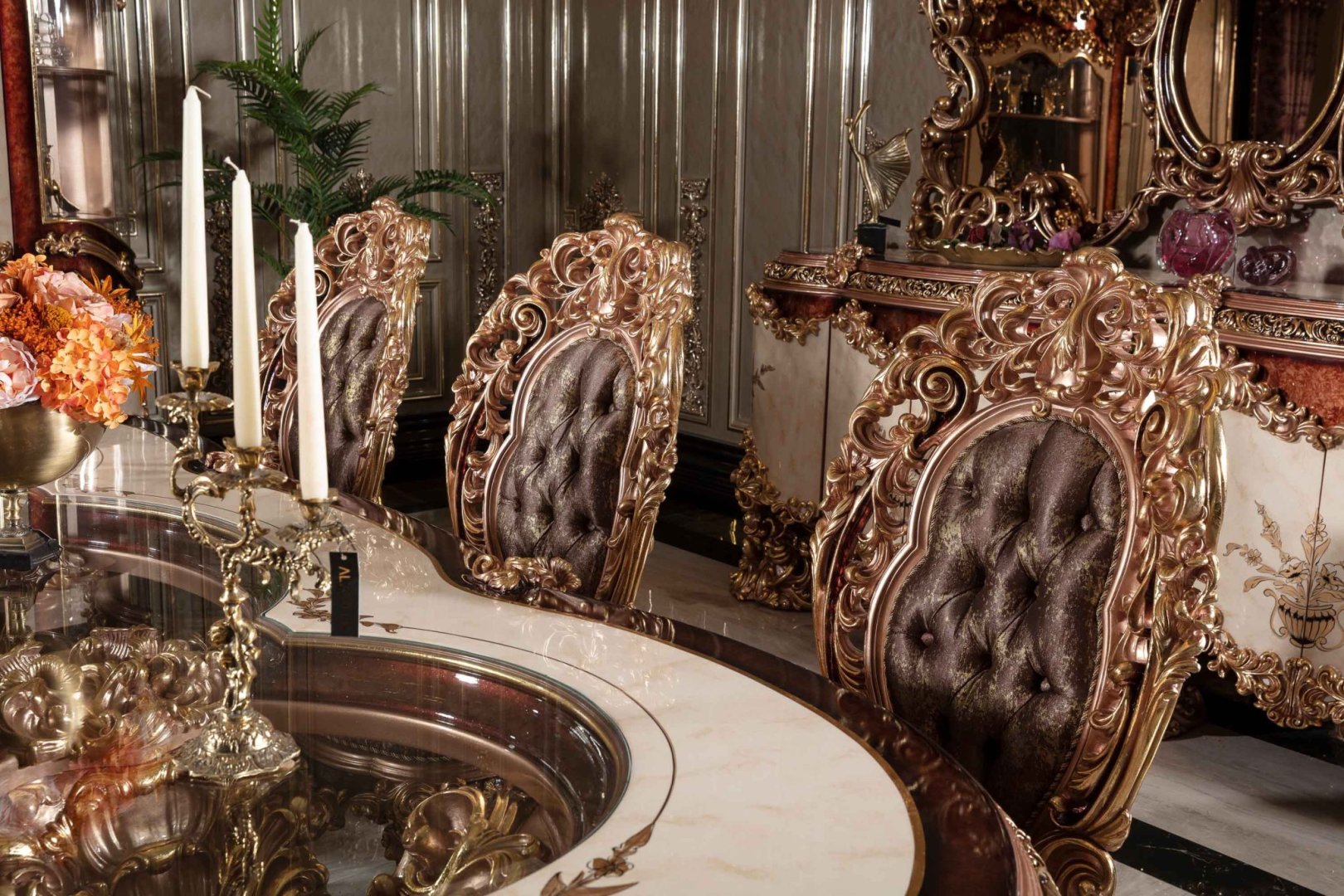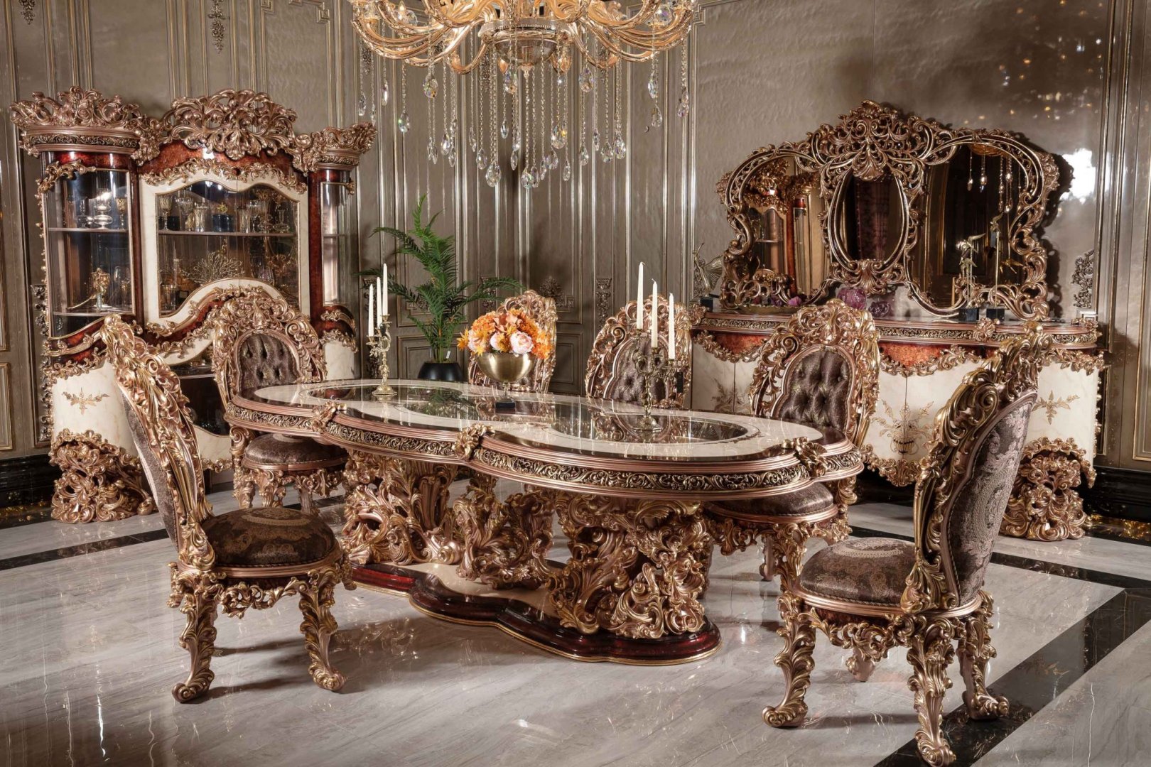 Aldabaran Klasik Yemek Odası, zamansız klasik tasarımı, güçlü form dili ve üst segment işçiliğiyle seçkin yaşam alanları için tasarlanmıştır. Dengeli oranları ve özenli detayları sayesinde mekâna asil, prestijli ve sofistike bir karakter kazandırır. Geleneksel estetik anlayışının modern üretim kalitesiyle buluştuğu Aldabaran, hem görsel bütünlük hem de uzun ömürlü kullanım sunar. Lüks klasik yemek odası arayanlar için Aldabaran, zarafet ve kaliteyi güçlü bir duruşla birleştirir.