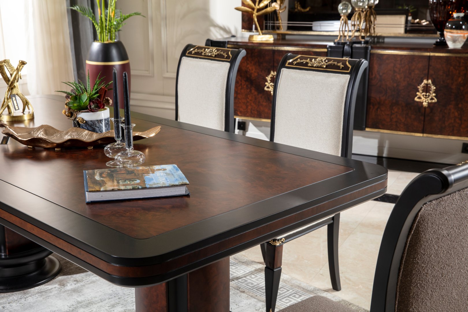 Alize Luxury Yemek Odası, ölçü dengesi, malzeme kalitesi ve sade çizgileriyle yaşam alanlarına şık ve bütüncül bir karakter kazandırır.