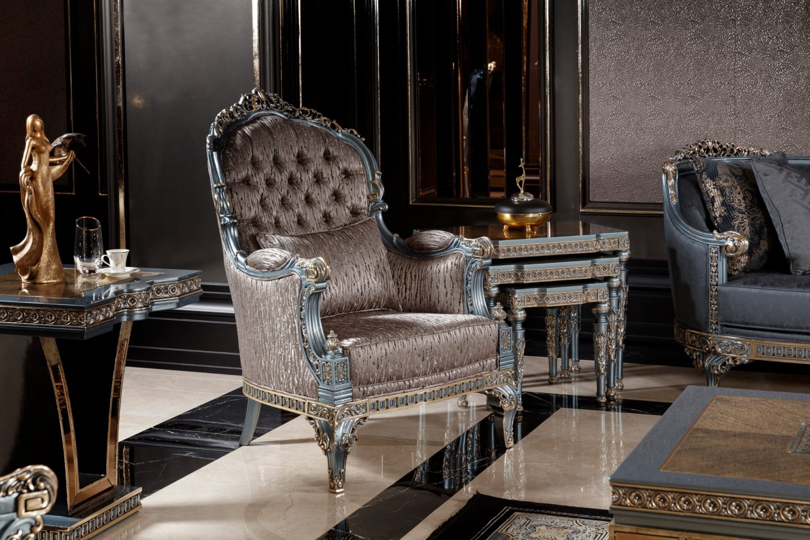 Amatis Klasik Koltuk Takımı, ölçü dengesi, malzeme kalitesi ve sade çizgileriyle yaşam alanlarına şık ve bütüncül bir karakter kazandırır.