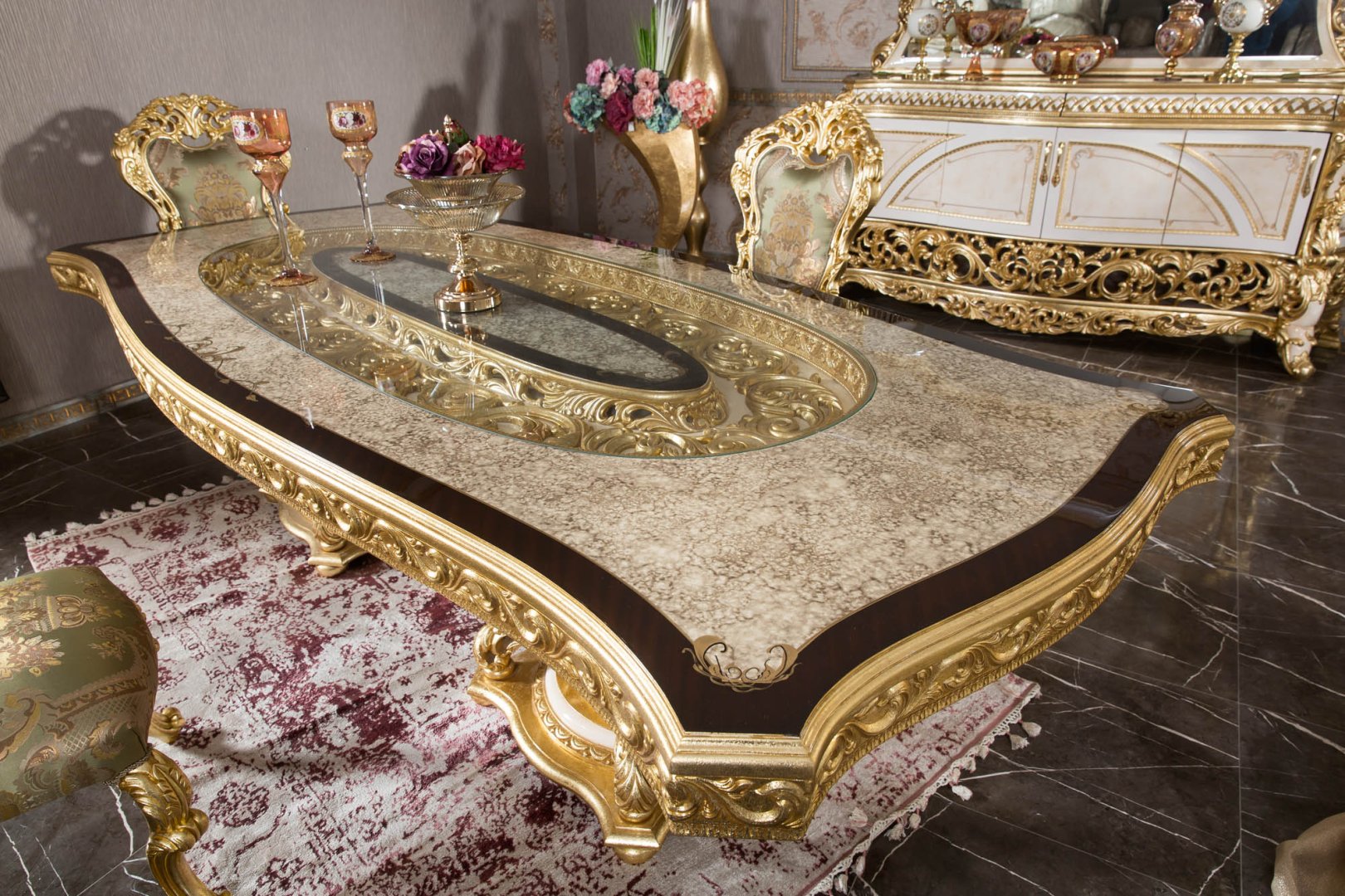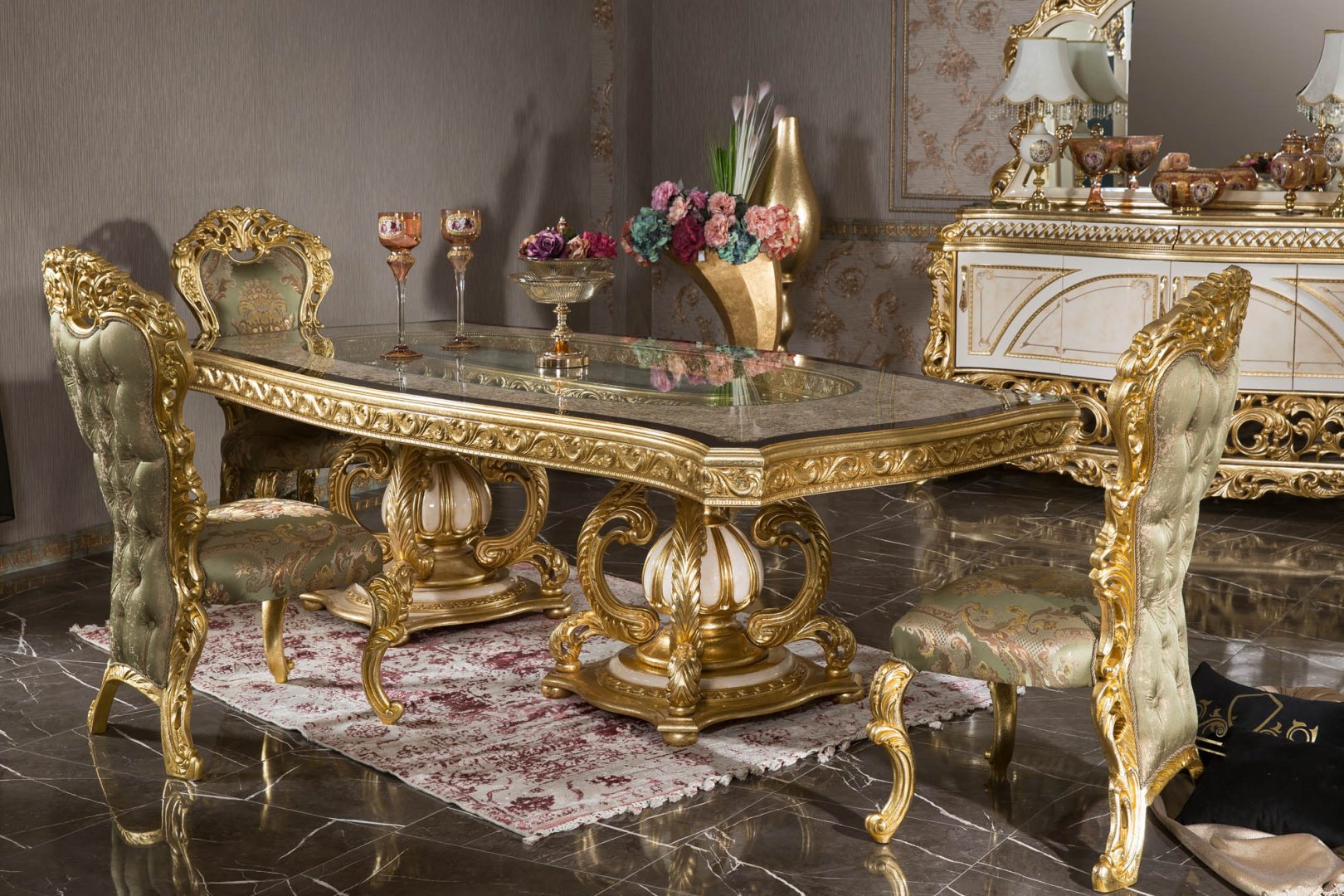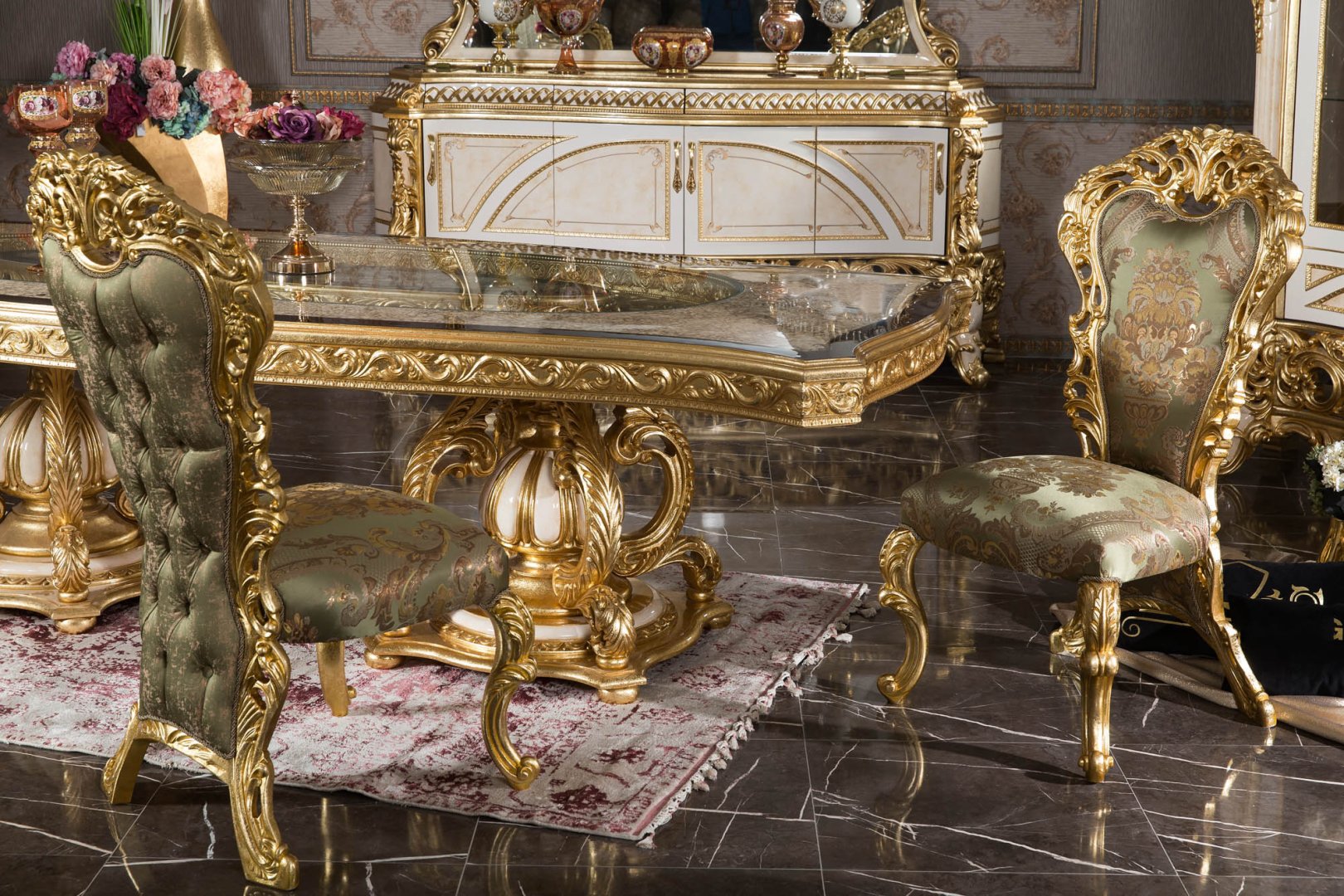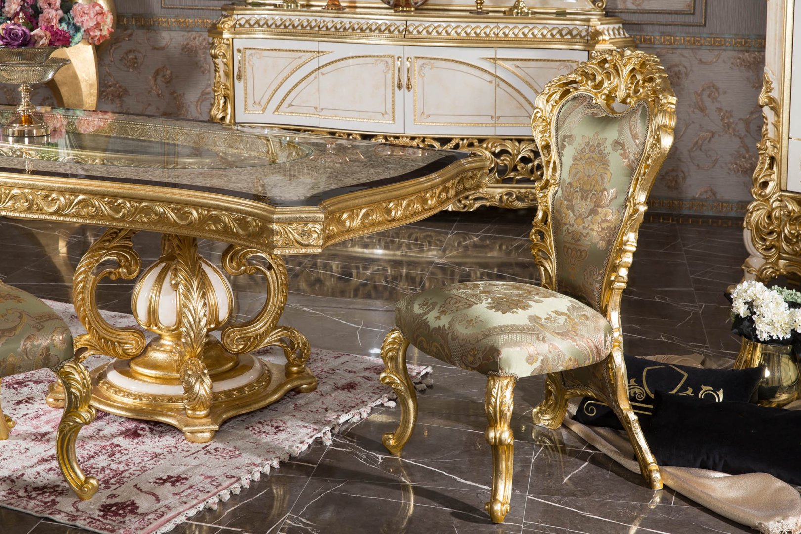 Klasik oymalı yemek odası mobilyası arayışında olan, altın detaylı ve prestijli bir atmosfer hedefleyen yüksek segment yaşam alanları için Asya güçlü bir referans oluşturur. Lüks konutlar, temsil gücü yüksek rezidanslar ve geleneksel zarafetin öne çıktığı iç mekânlar için tasarlanmış, zamansız bir klasik yorumdur.
