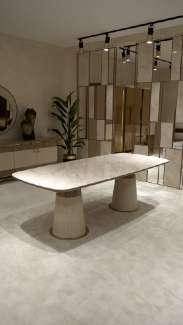 Aura Modern Luxury Yemek Odası, çağdaş tasarımı dingin bir mimari yaklaşım, dengeli oranlar ve rafine bir kompozisyon diliyle yorumlayan seçkin bir koleksiyondur. Tasarım, lüksü gösterişli detaylar üzerinden değil; yüzeylerin sakin sürekliliği, hacimlerin bilinçli dengesi ve mekânla kurulan doğal ilişki üzerinden tanımlar. Aura, yemek alanında huzurlu, sofistike ve zamana karşı dirençli bir atmosfer oluşturur.