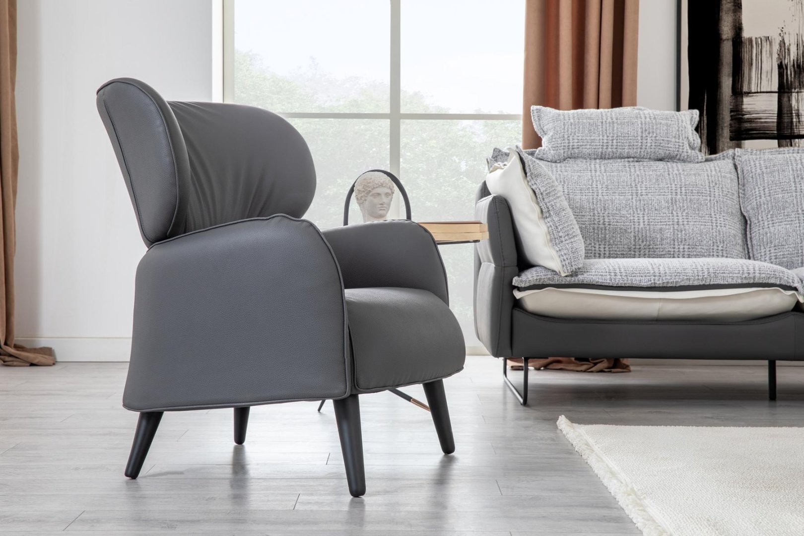 Oturum alanı, rahatlığı destekleyen oranlarla tasarlanmıştır. Sırt yapısı mekânı baskılamadan konfor sunarken, kol detayları formun bütünlüğünü korur. Genel siluet, modern salonlarda aranan huzurlu ve dengeli duruşu yansıtır.