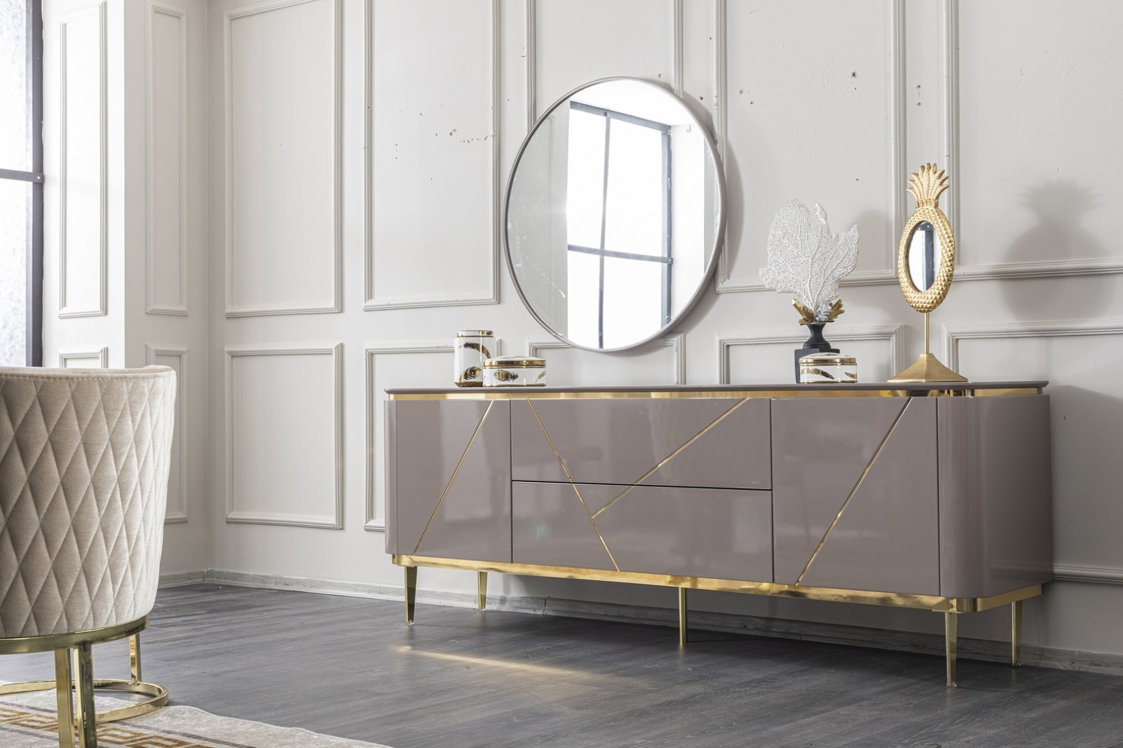 Gucci Yemek Odası, modern iç mekân tasarımında yemek alanını estetik bir odak hâline getirir. Açık plan yaşam alanlarında mekânsal bütünlüğü güçlendirir, daha kompakt alanlarda ise şıklık ve düzen hissini ön plana çıkarır. Zarafet odaklı tasarımıyla modern yemek odası anlayışına zamansız bir yorum sunar.