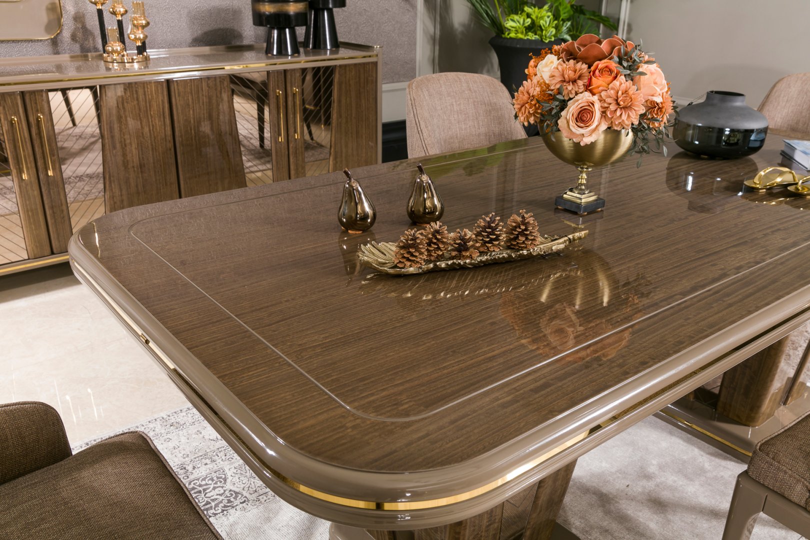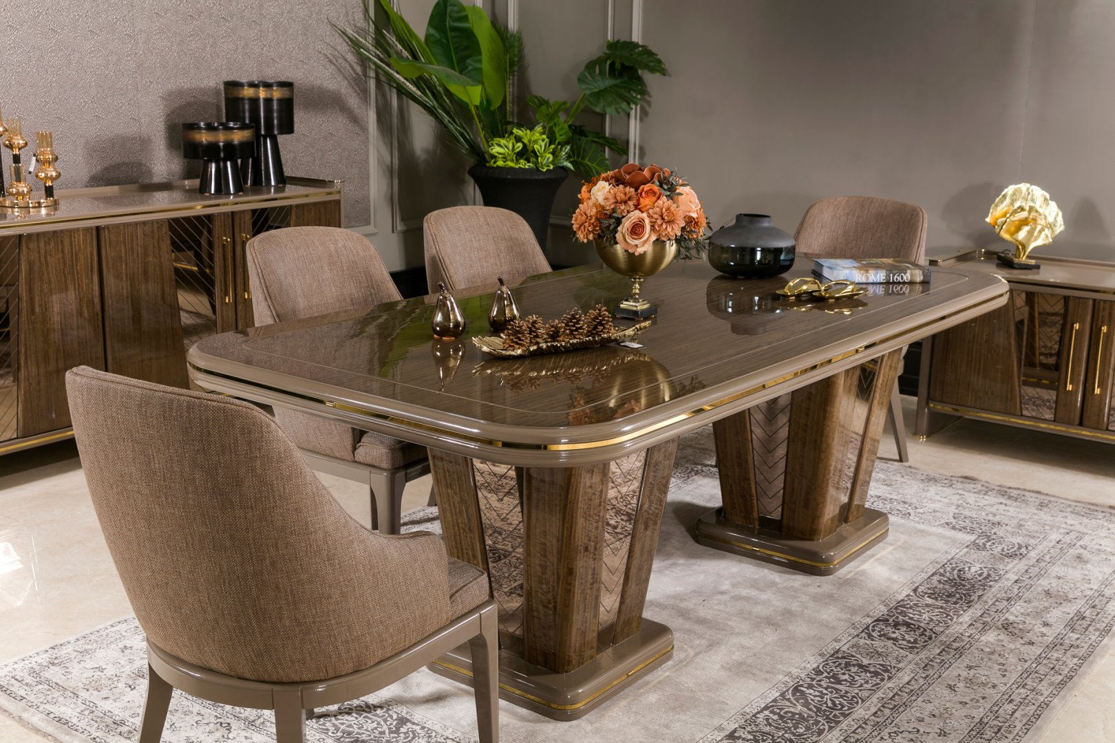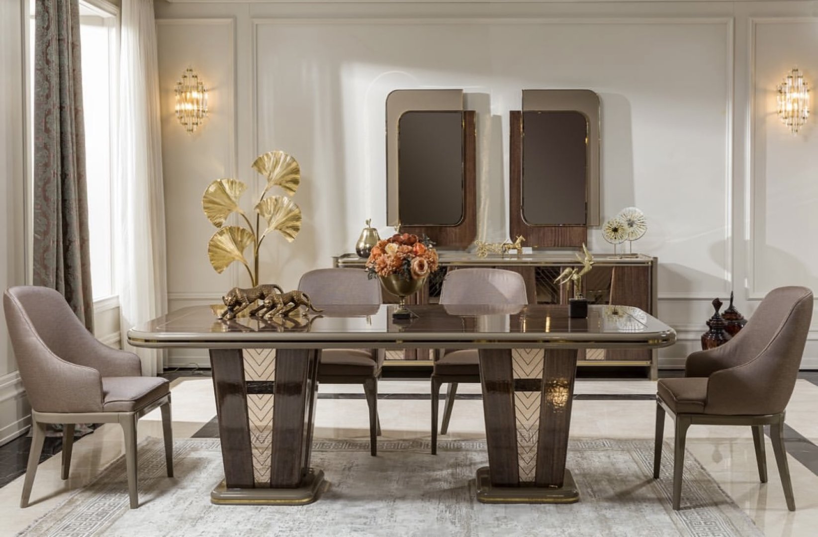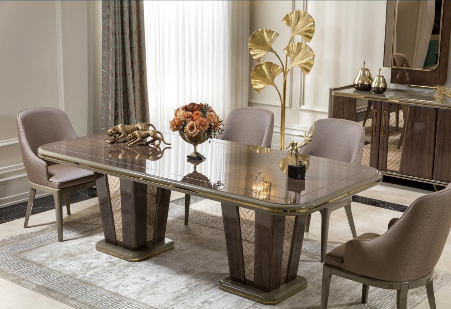 Günce Luxury Yemek Odası, ölçü dengesi, malzeme kalitesi ve sade çizgileriyle yaşam alanlarına şık ve bütüncül bir karakter kazandırır.