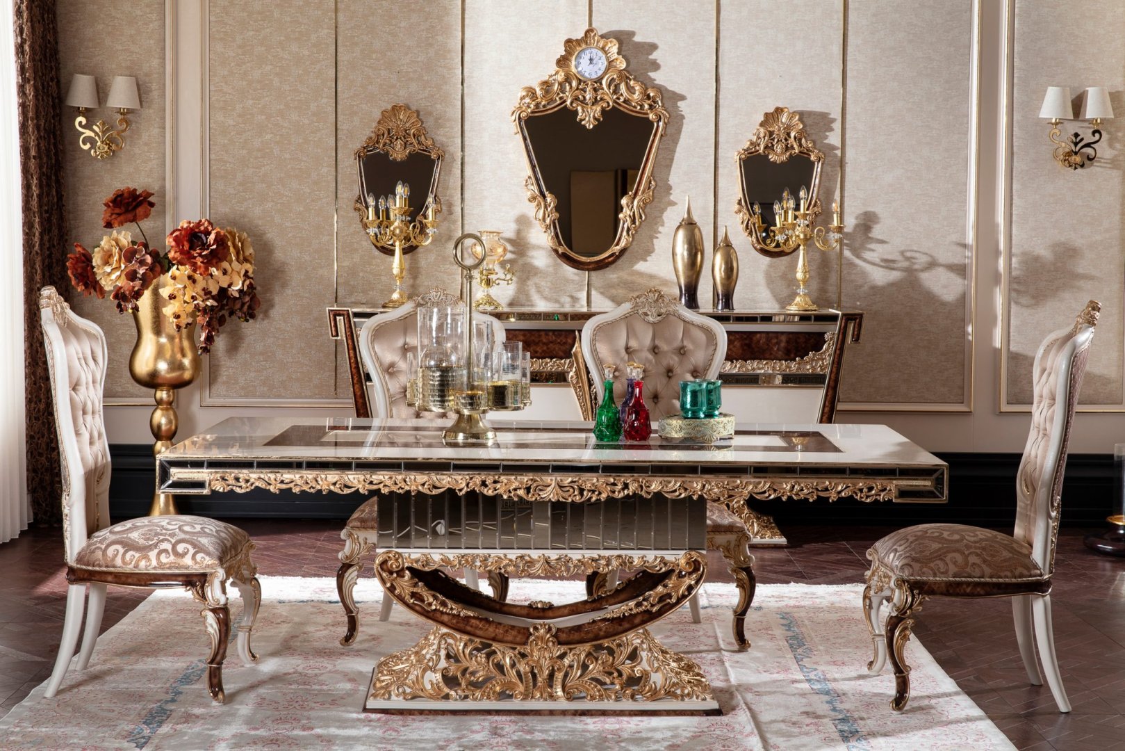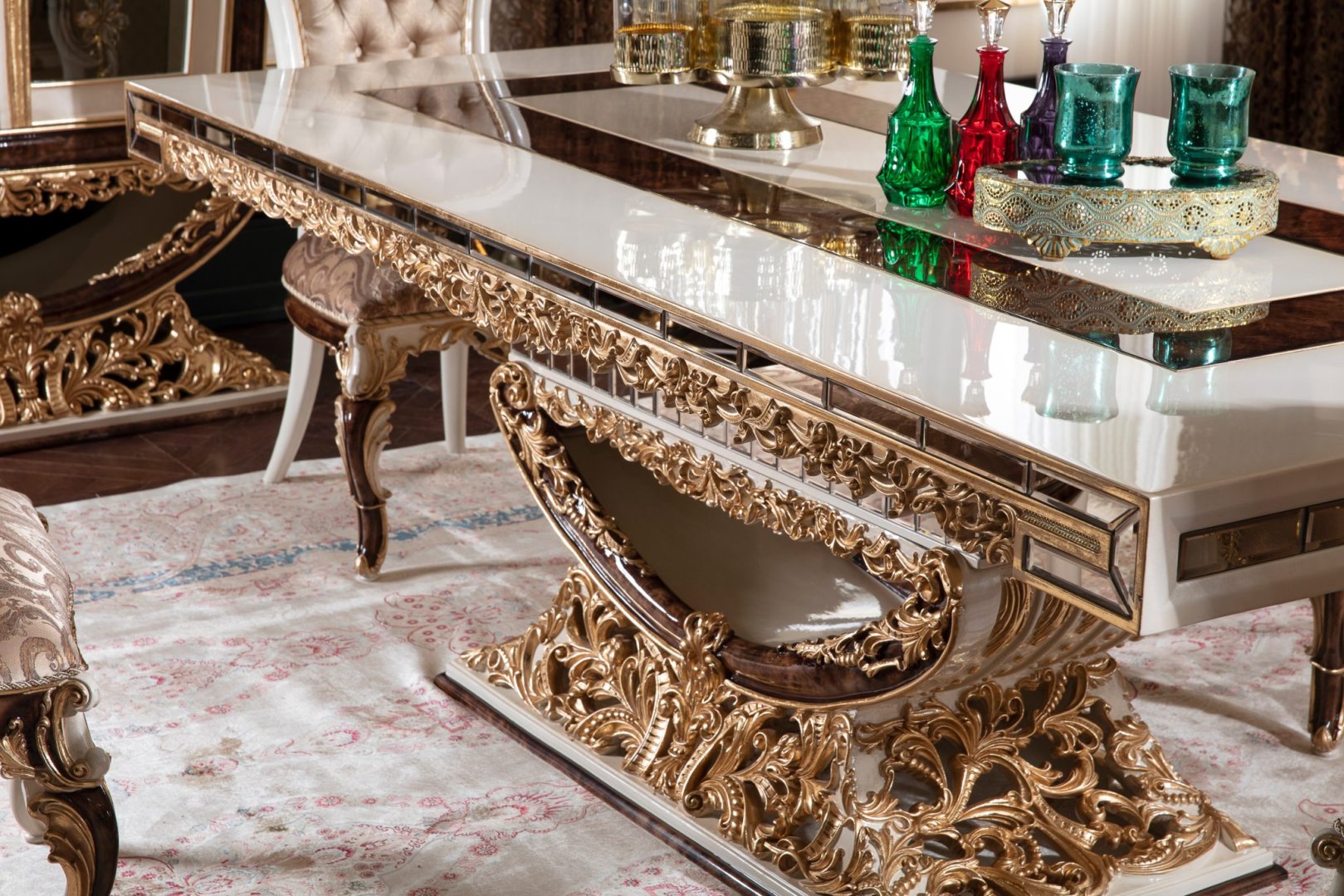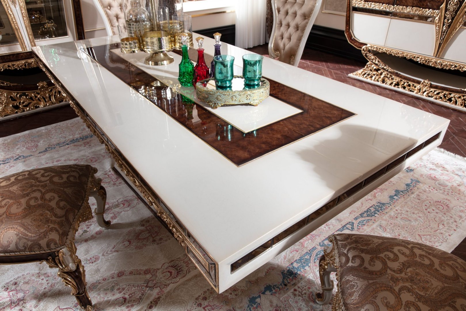 Klasik yemek odası mobilyası arayışında olan, kaliteyi sakin bir zarafetle ifade etmek isteyen yüksek segment yaşam alanları için Karina; lüks konutlar, prestijli rezidanslar ve uzun vadeli tasarım değeri hedefleyen iç mekânlar adına güçlü bir referans niteliği taşır.