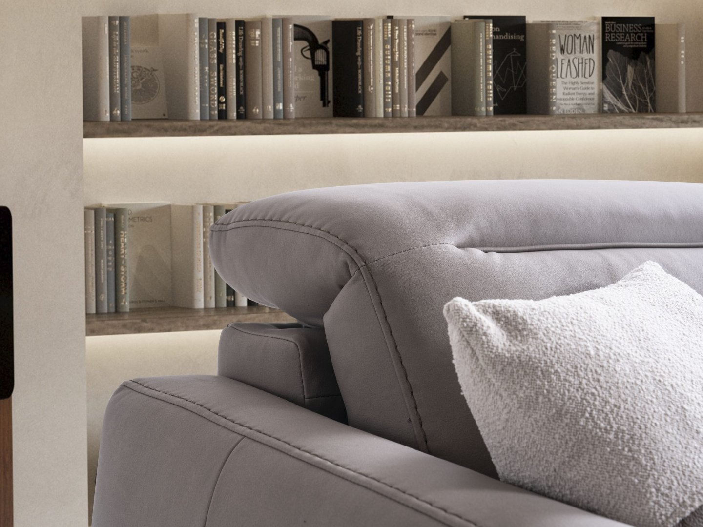 Oturum alanı, uzanma rahatlığını destekleyen ölçülü derinlik oranlarıyla kurgulanmıştır. Dinlenme bölümü ana formdan kopmadan bütünsel bir siluet oluşturur. Sırt yapısı mekânın genel hacmini bastırmadan destek sağlar. Genel görünüm, modern mekânlarda aranan sade ve dengeli duruşu korur.
