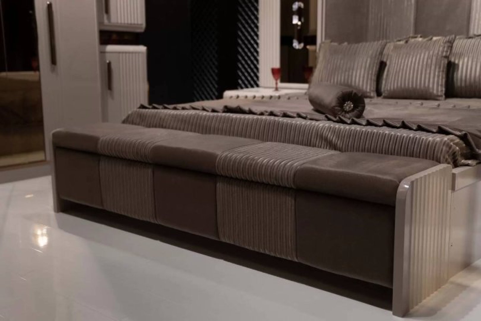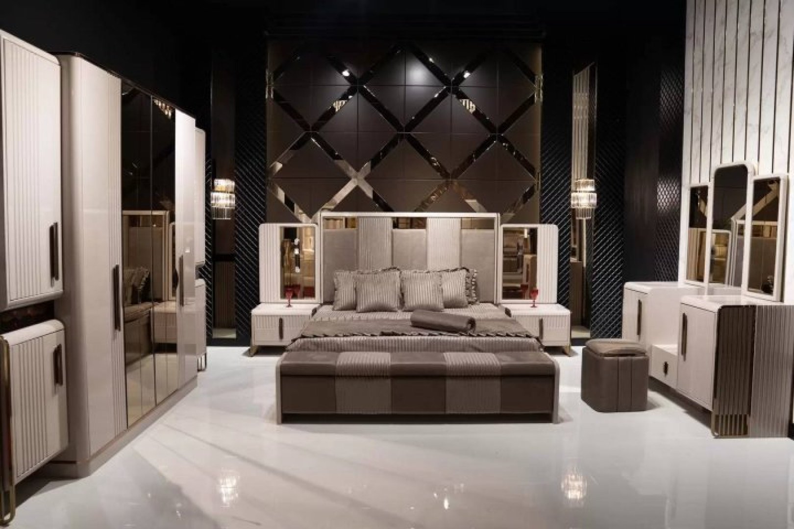 Madrid Modern Luxury Yatak Odası, ölçü dengesi, malzeme kalitesi ve sade çizgileriyle yaşam alanlarına şık ve bütüncül bir karakter kazandırır.