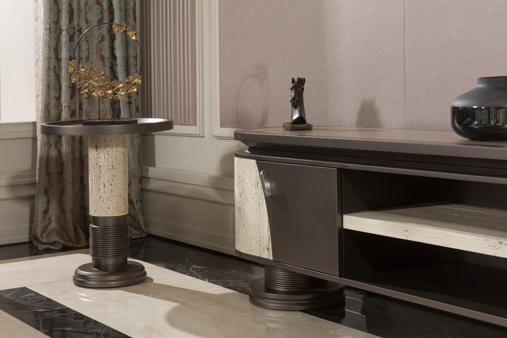 Monarosa Luxury TV Ünitesi, modern lüks anlayışını sade formlar, yuvarlatılmış hatlar ve doğal yüzey geçişleriyle yorumlayan rafine bir tasarımdır. Mermer görünümlü detayları ve dengeli yatay yapısıyla yaşam alanına sakin, prestijli ve çağdaş bir karakter kazandırır. Monarosa, modern rezidanslar ve premium yaşam alanları için tasarlanmış, abartıdan uzak ama kaliteyi hissettiren özel bir TV ünitesidir.