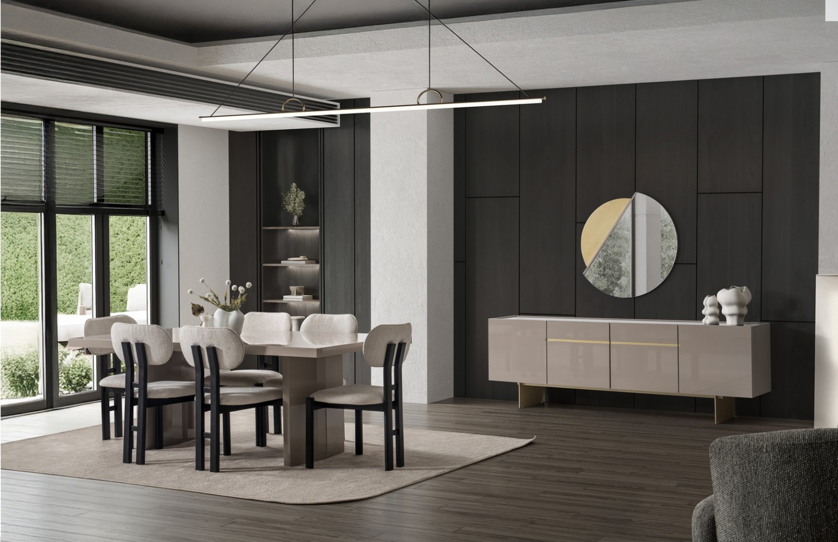Moon Yemek Odası , ölçü dengesi, malzeme kalitesi ve sade çizgileriyle yaşam alanlarına şık ve bütüncül bir karakter kazandırır.