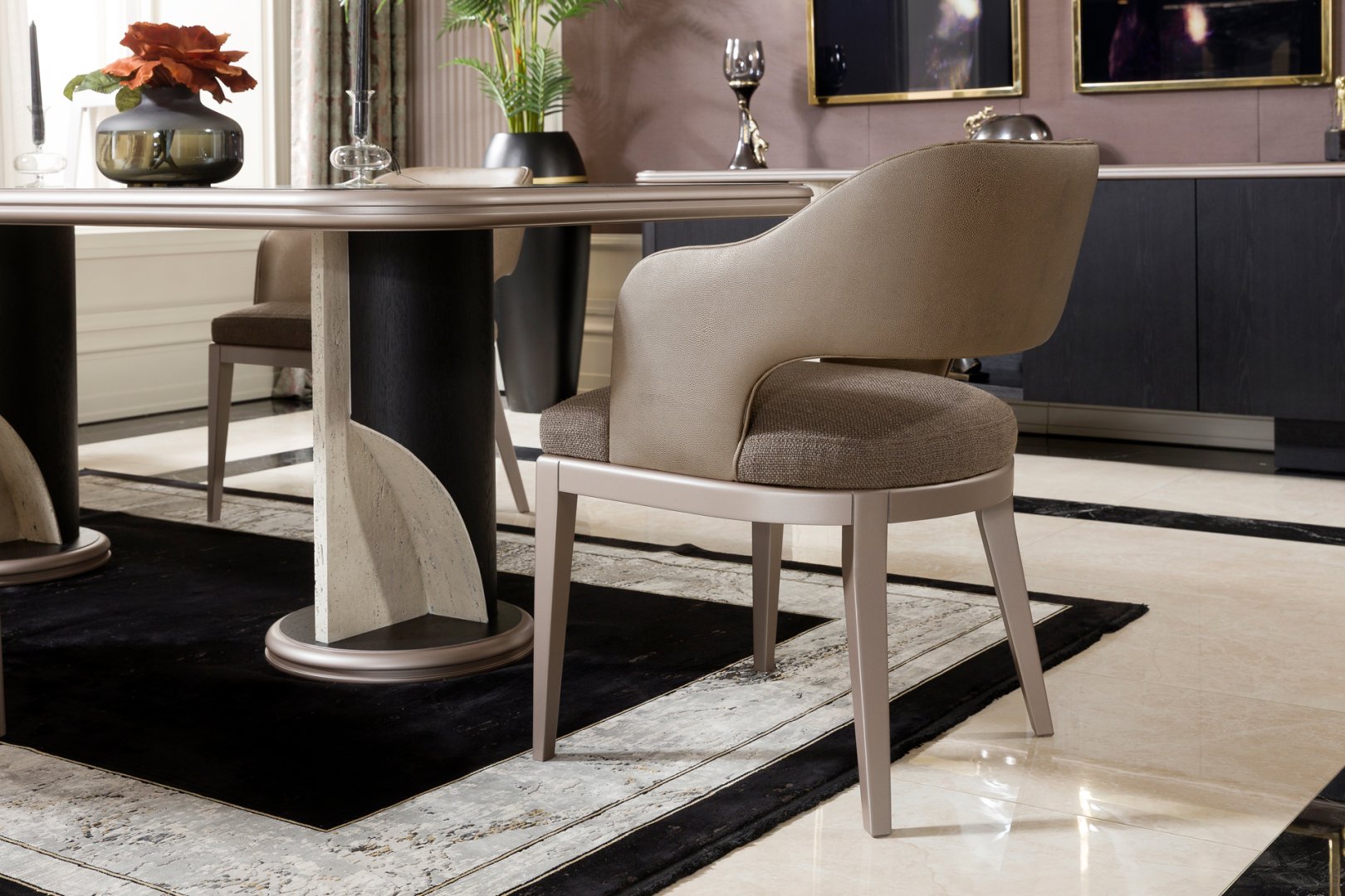 Noya Luxury Yemek Odası, çağdaş tasarımı mimari netlik ve dengeli bir kompozisyon anlayışıyla birleştiren rafine bir koleksiyondur. Yüzeyler arasındaki sakin süreklilik, ölçülü hacimler ve bilinçli oran kullanımı; yemek alanında düzenli, ferah ve sofistike bir atmosfer oluşturur. Noya, iddiasını dikkat çekici detaylardan değil, mekânsal tutarlılık ve bütünlük üzerinden kurar.