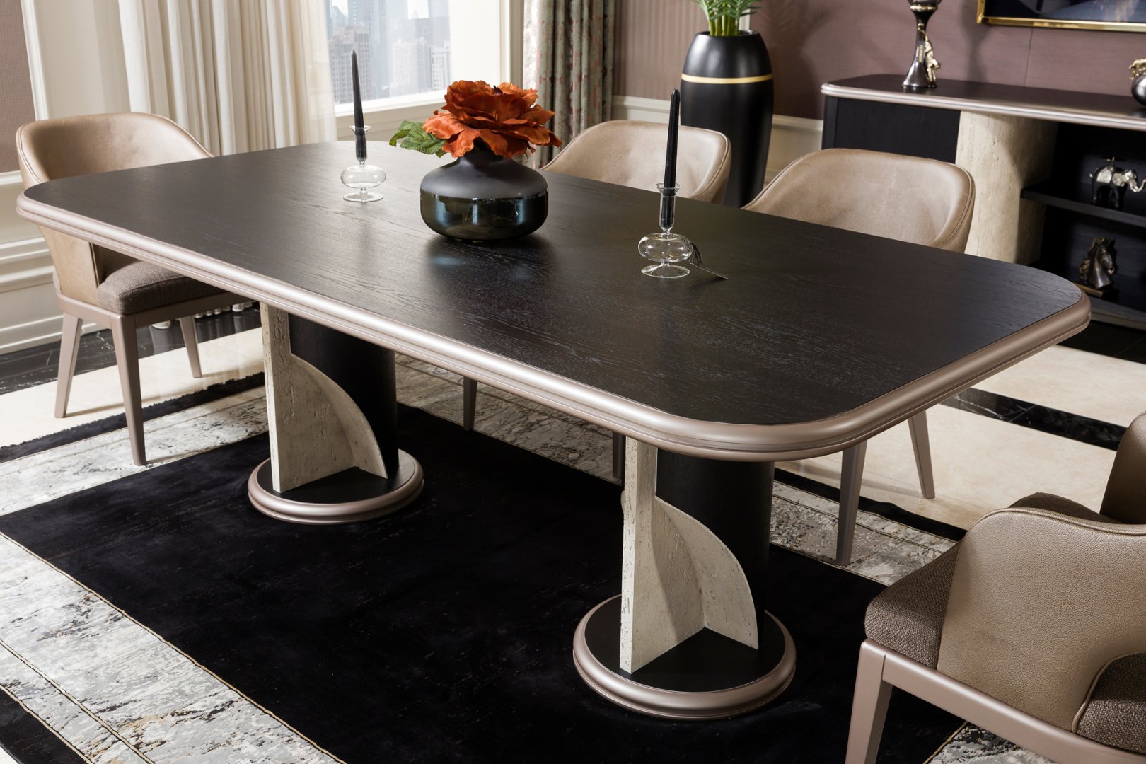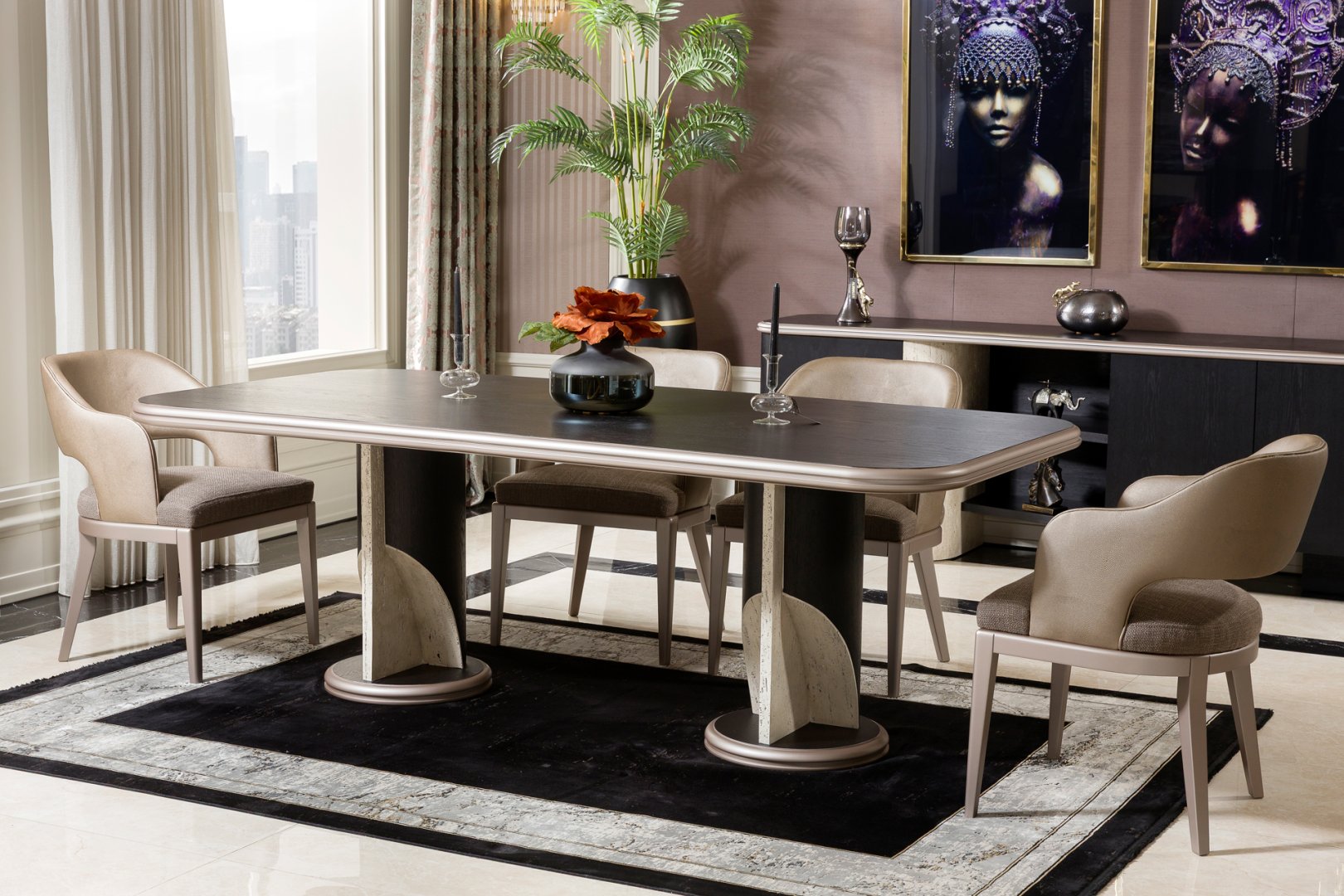 Noya Luxury Yemek Odası, ölçü dengesi, malzeme kalitesi ve sade çizgileriyle yaşam alanlarına şık ve bütüncül bir karakter kazandırır.