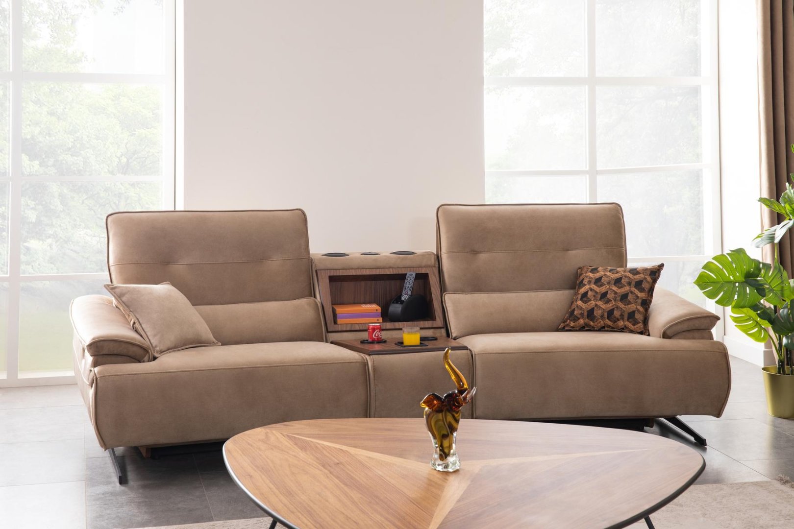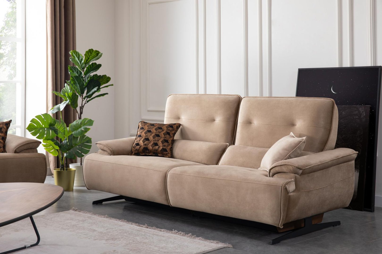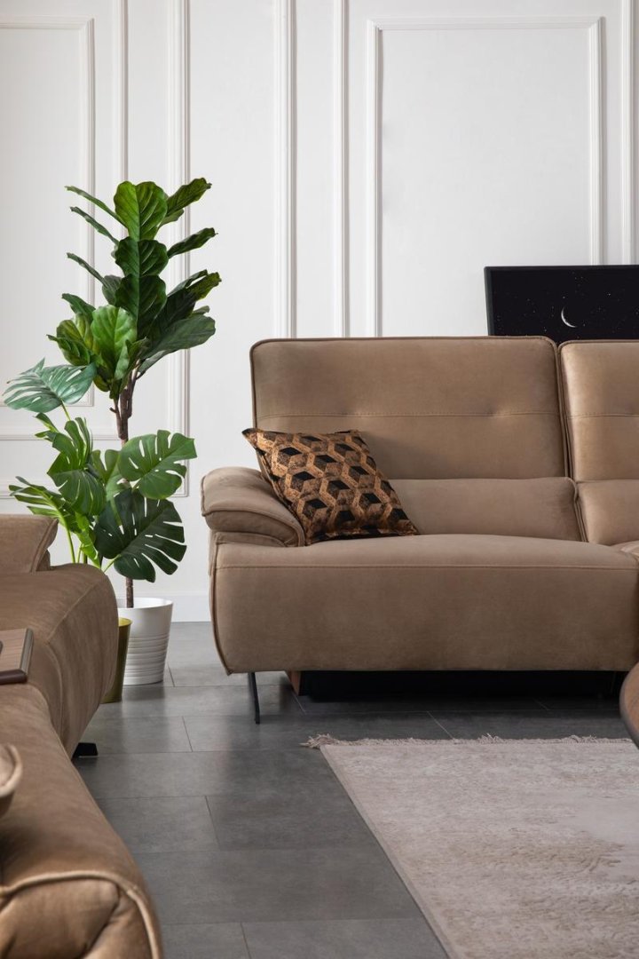 Perge Salon Takımı, modern salon dekorasyonu içinde alanı bölmeden tanımlar. Açık plan yaşam alanlarında bütünlük sağlar, daha kompakt salonlarda ise mekânın olduğundan daha geniş algılanmasına katkıda bulunur. Dengeli oranları sayesinde modern salon anlayışında zamansız bir alternatif sunar.