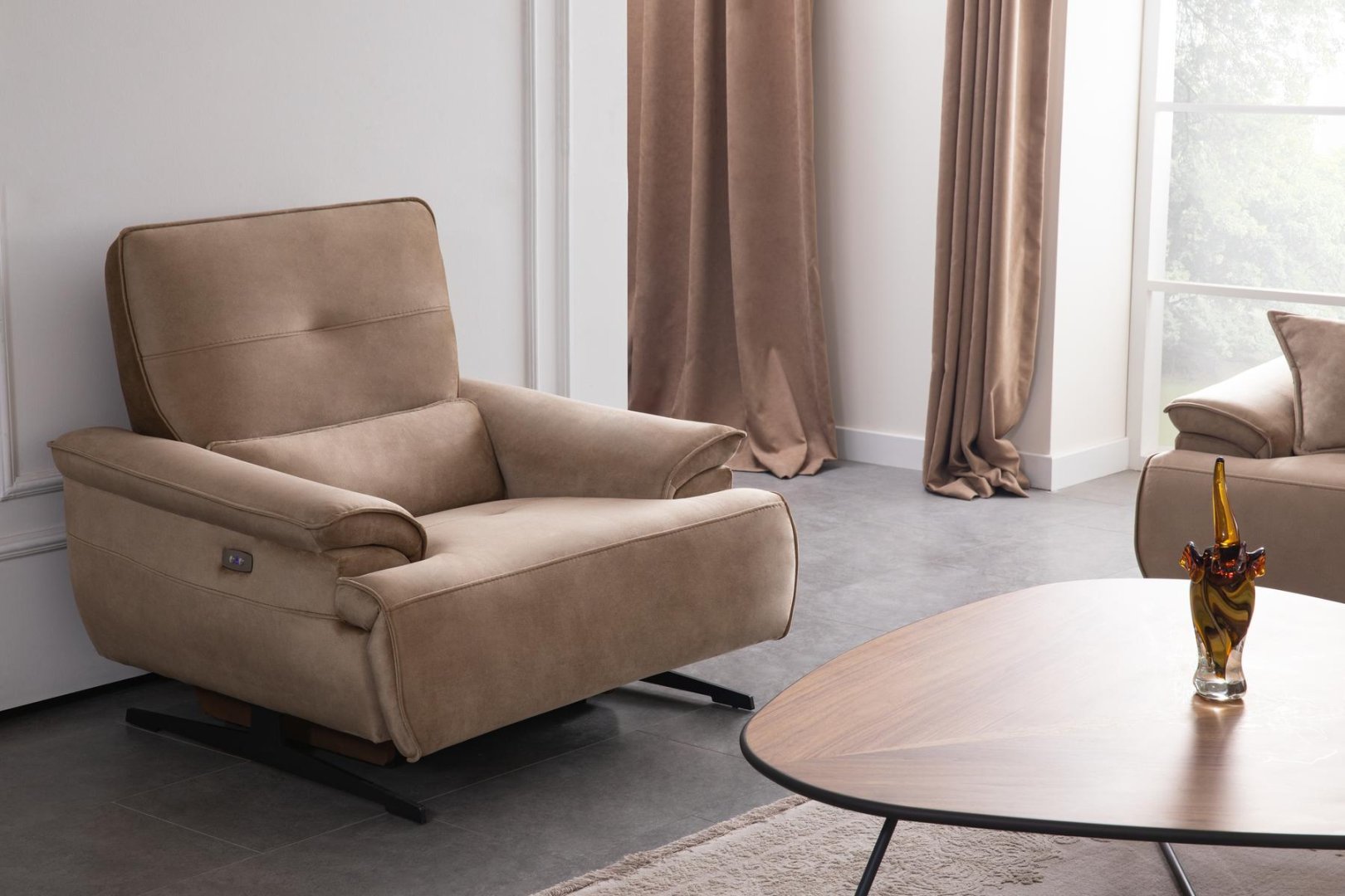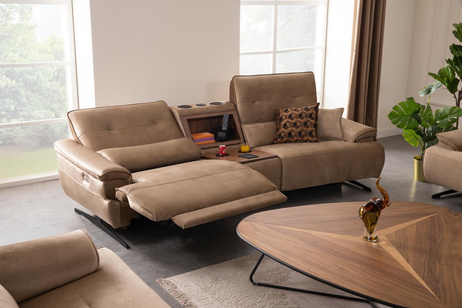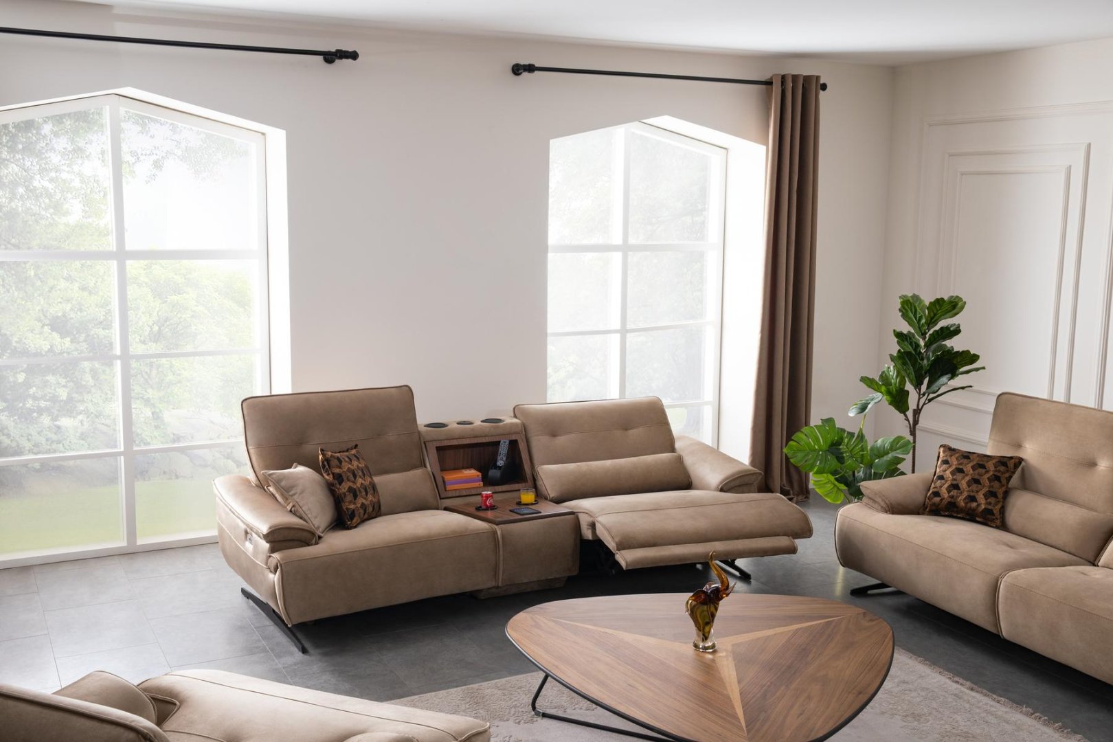 Perge Salon Takımı, modern salon dekorasyonu içinde alanı bölmeden tanımlar. Açık plan yaşam alanlarında bütünlük sağlar, daha kompakt salonlarda ise mekânın olduğundan daha geniş algılanmasına katkıda bulunur. Dengeli oranları sayesinde modern salon anlayışında zamansız bir alternatif sunar.