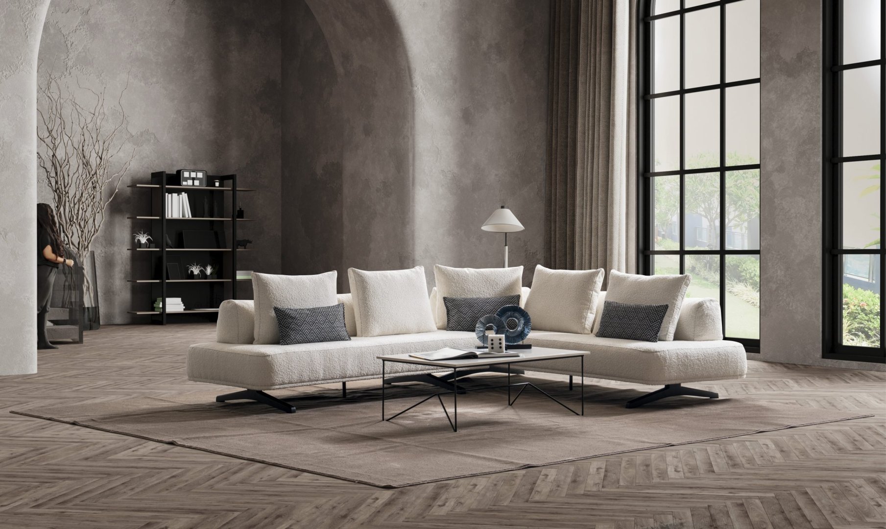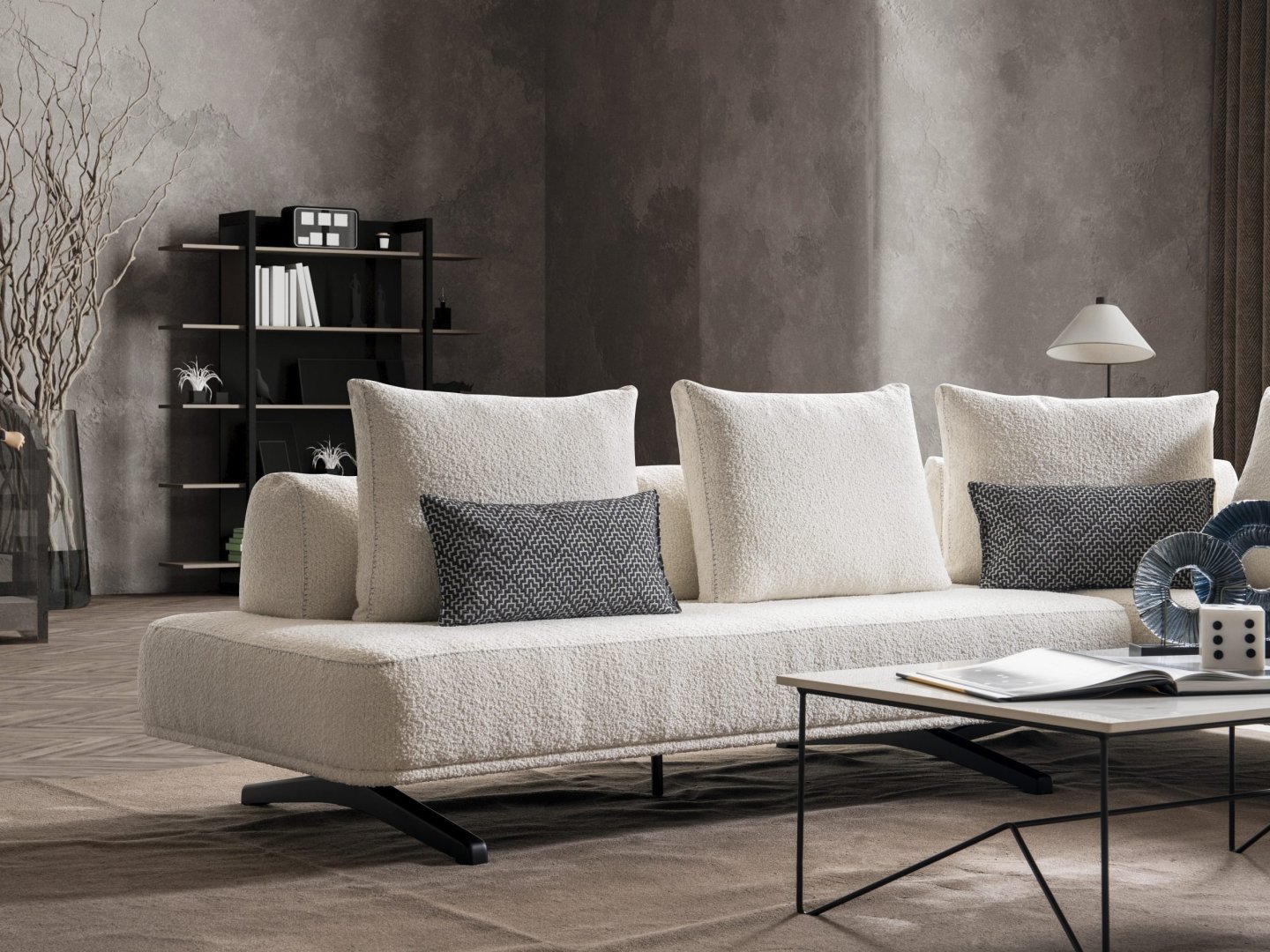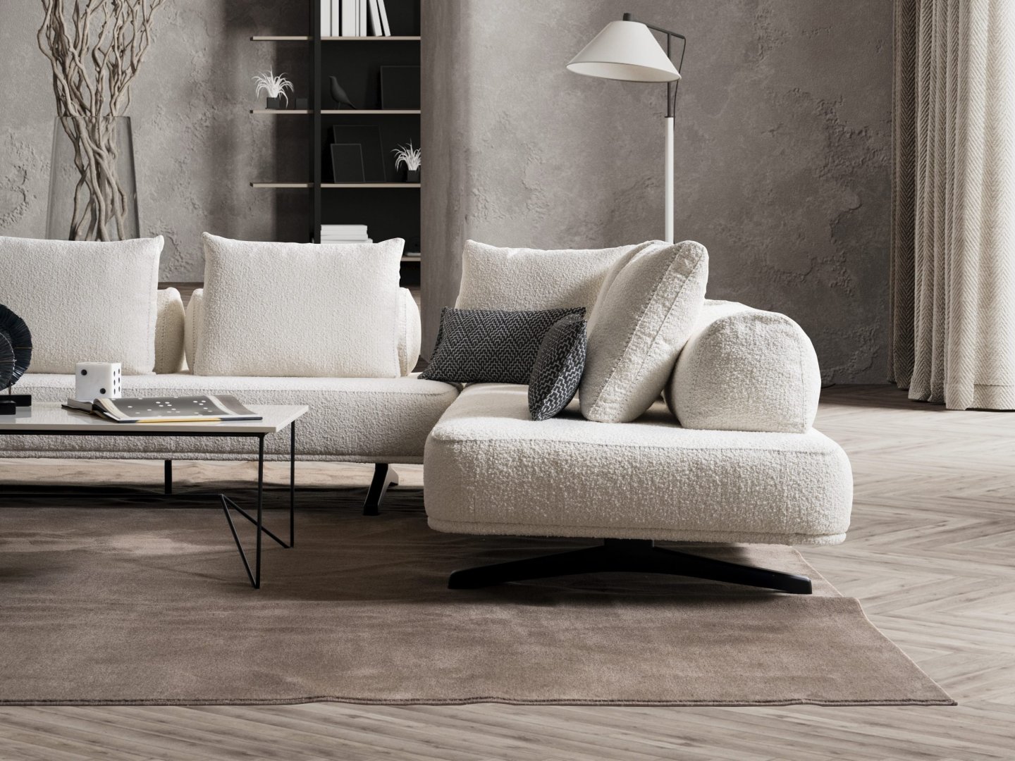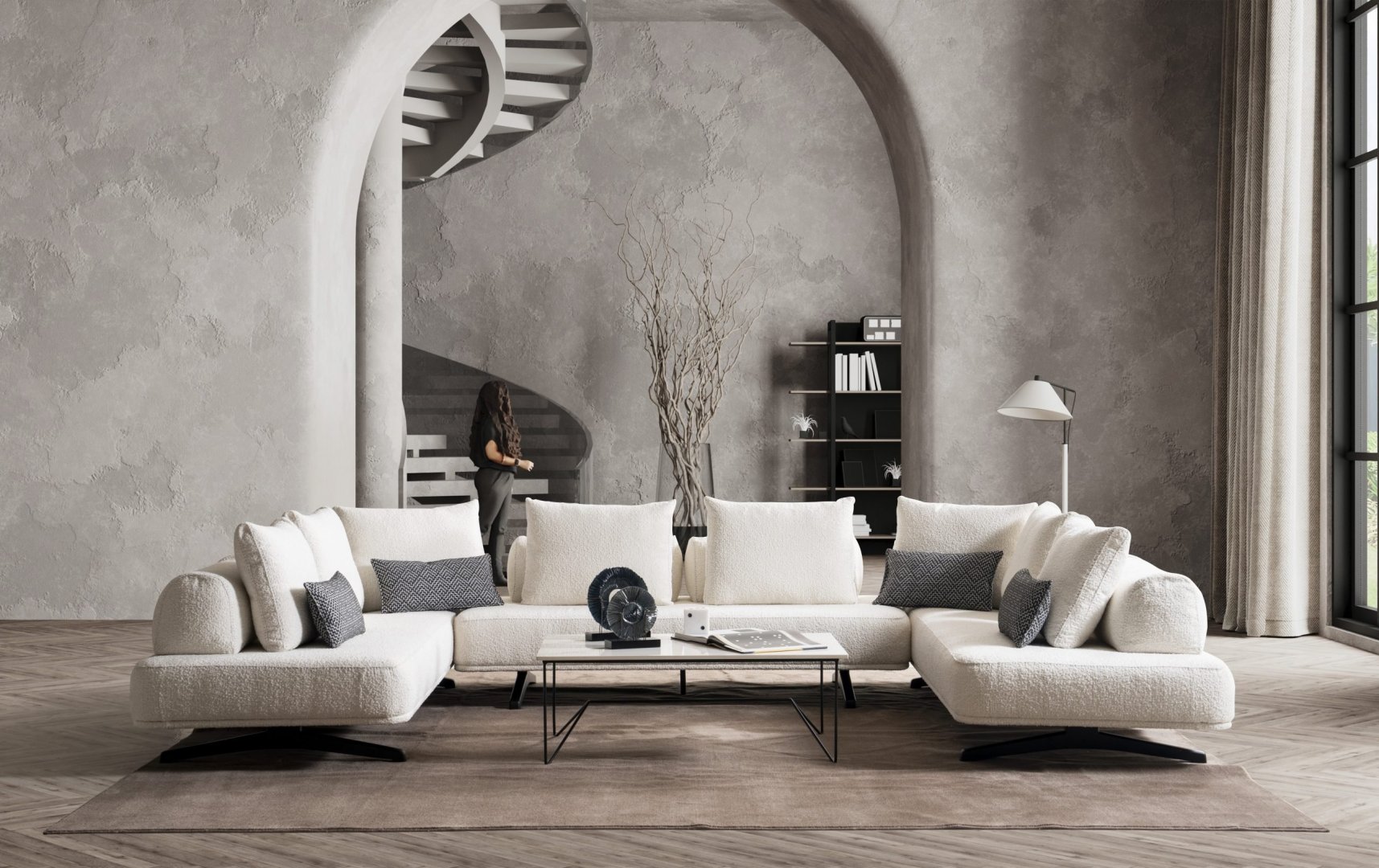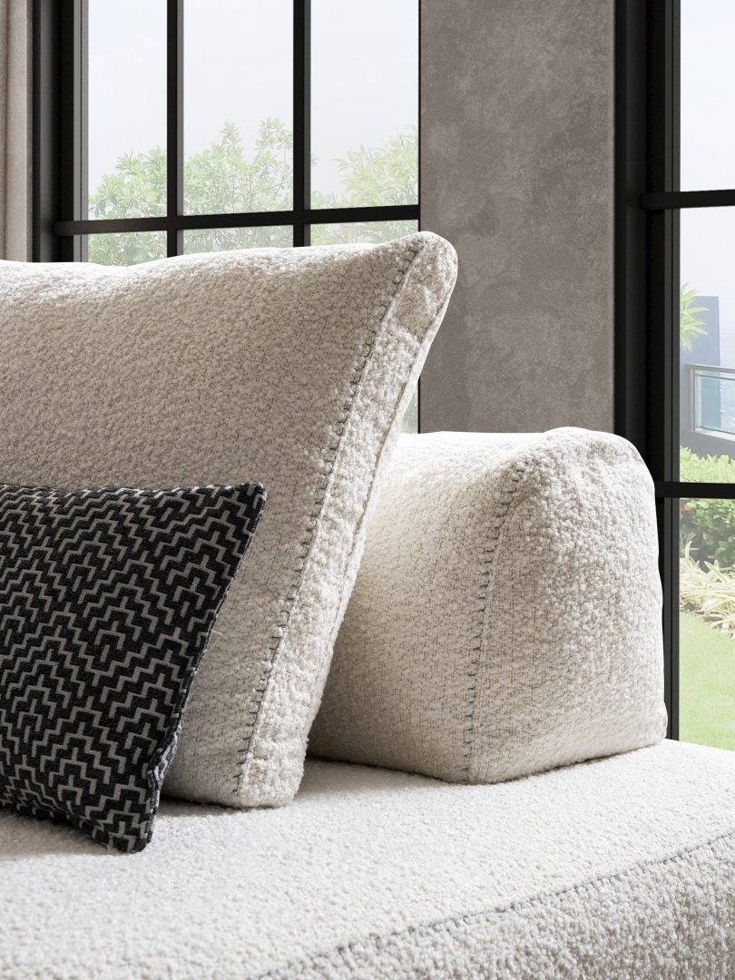 Rüya Köşe Takımı, modern salon dekorasyonu içinde mekâna dingin bir merkez kazandırır. Açık plan yaşam alanlarında rahat bir toplanma alanı oluşturur, daha kompakt salonlarda ise alanın yumuşak ve ferah algılanmasına katkıda bulunur. Akış odaklı form diliyle modern köşe koltuk anlayışına zamansız ve dengeli bir yorum sunar.