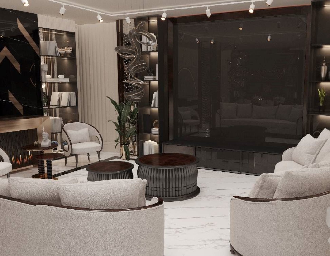 Sadaf Villa Projesi, ölçü dengesi, malzeme kalitesi ve sade çizgileriyle yaşam alanlarına şık ve bütüncül bir karakter kazandırır.