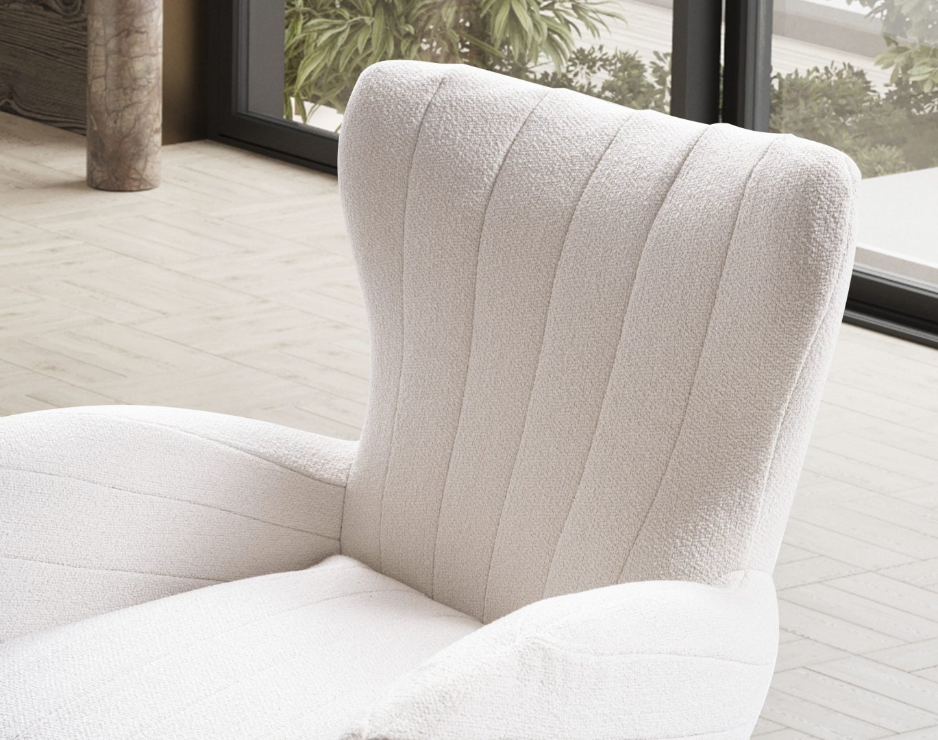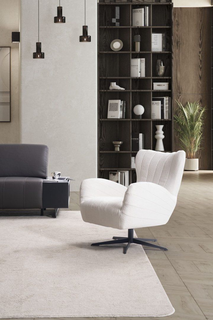 Oturum yapısı, kesintisiz yüzeyler ve dengeli oranlarla desteklenmiştir. Sırt ve kol detayları formun doğal akışını bozmadan konforu tamamlar. Genel siluet, modern salonlarda aranan sade ama canlı duruşu korur.