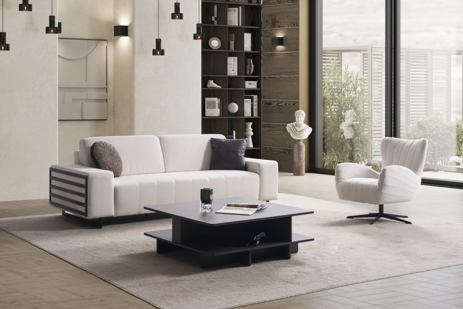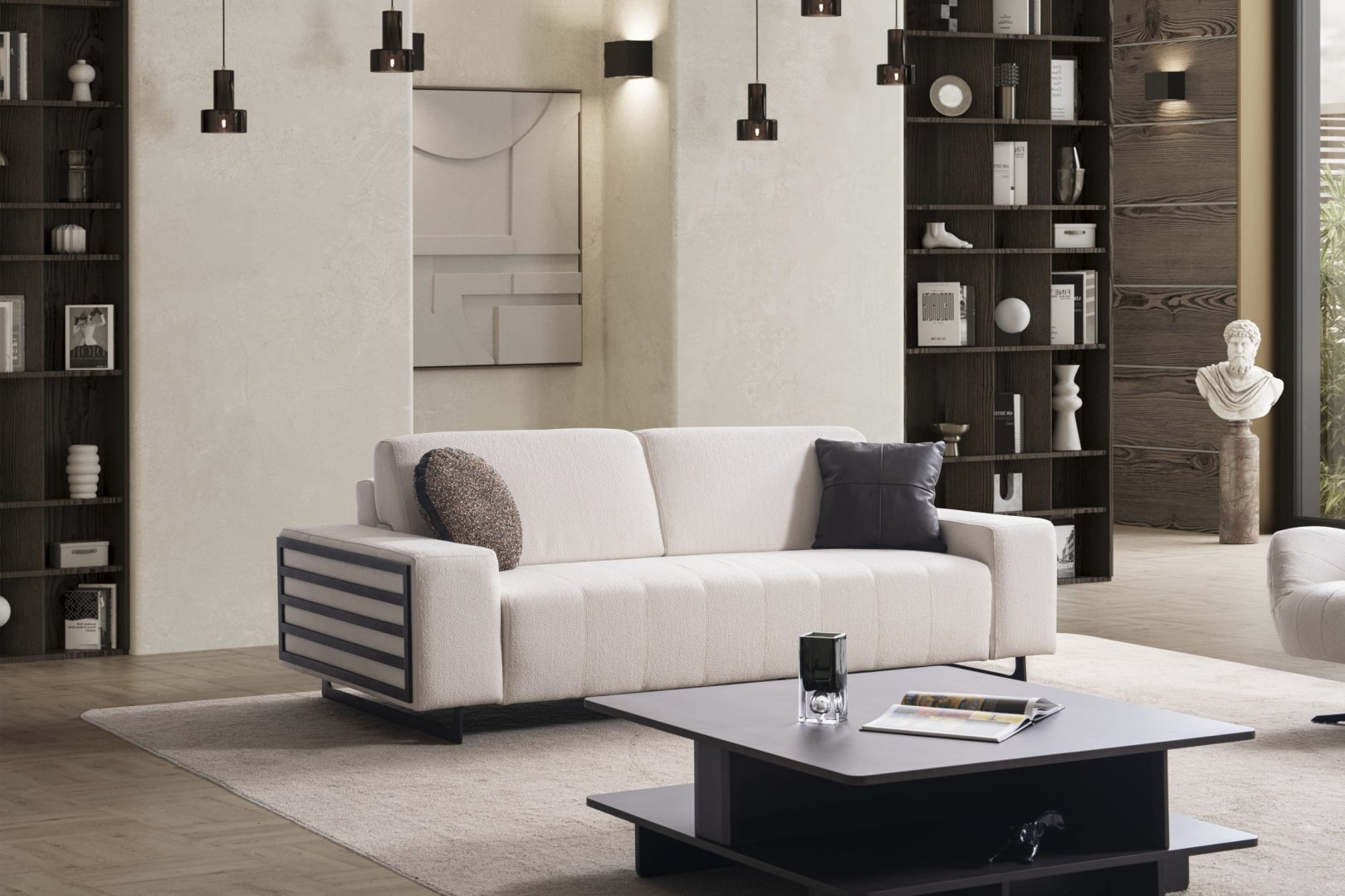 Şelale Salon Takımı, modern salon dekorasyonu içinde mekânın enerjisini yönlendiren bir etki oluşturur. Açık plan alanlarda hareketli ama kontrollü bir atmosfer yaratır, daha dar salonlarda ise sert köşeleri yumuşatarak mekânın algısını rahatlatır. Akış odaklı tasarımıyla modern salon anlayışına karakter kazandıran bir alternatif sunar.