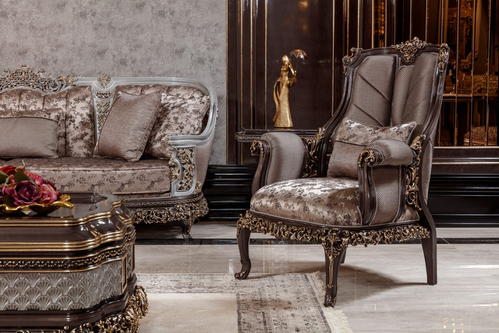 Sirius Classic Luxury Koltuk Takımı, klasik oturma kültürünü güçlü bir mimari kurgu ve temsil odaklı bir tasarım anlayışıyla ele alan seçkin bir koleksiyondur. Tasarım, ihtişamı yüzeysel süslemelerle değil; oranların netliği, hacimlerin dengesi ve kompozisyonun bütünlüğü üzerinden inşa eder. Sirius, yaşam alanında yerleşik, otoriter ve zamana karşı dirençli bir atmosfer oluşturur.