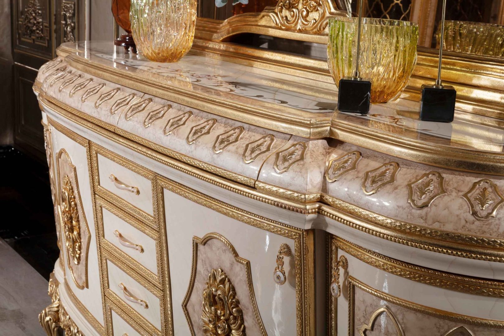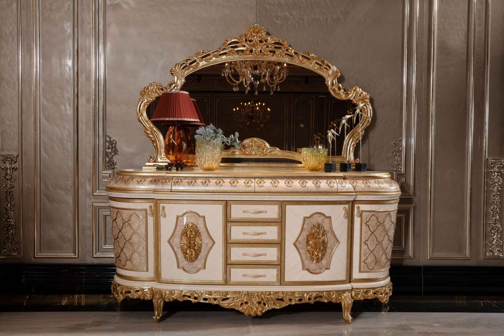 Talya Klasik Yemek Odası, klasik tasarım geleneğini zarif oranlar, mimari düzen ve ölçülü bir estetik anlayışıyla yorumlayan seçkin bir koleksiyondur. Tasarım, ihtişamı abartılı süslemelerle değil; form bütünlüğü, yüzey dengesi ve kompozisyon disiplini üzerinden kurar. Talya, yemek alanında sakin, köklü ve zamansız bir atmosfer oluşturur.