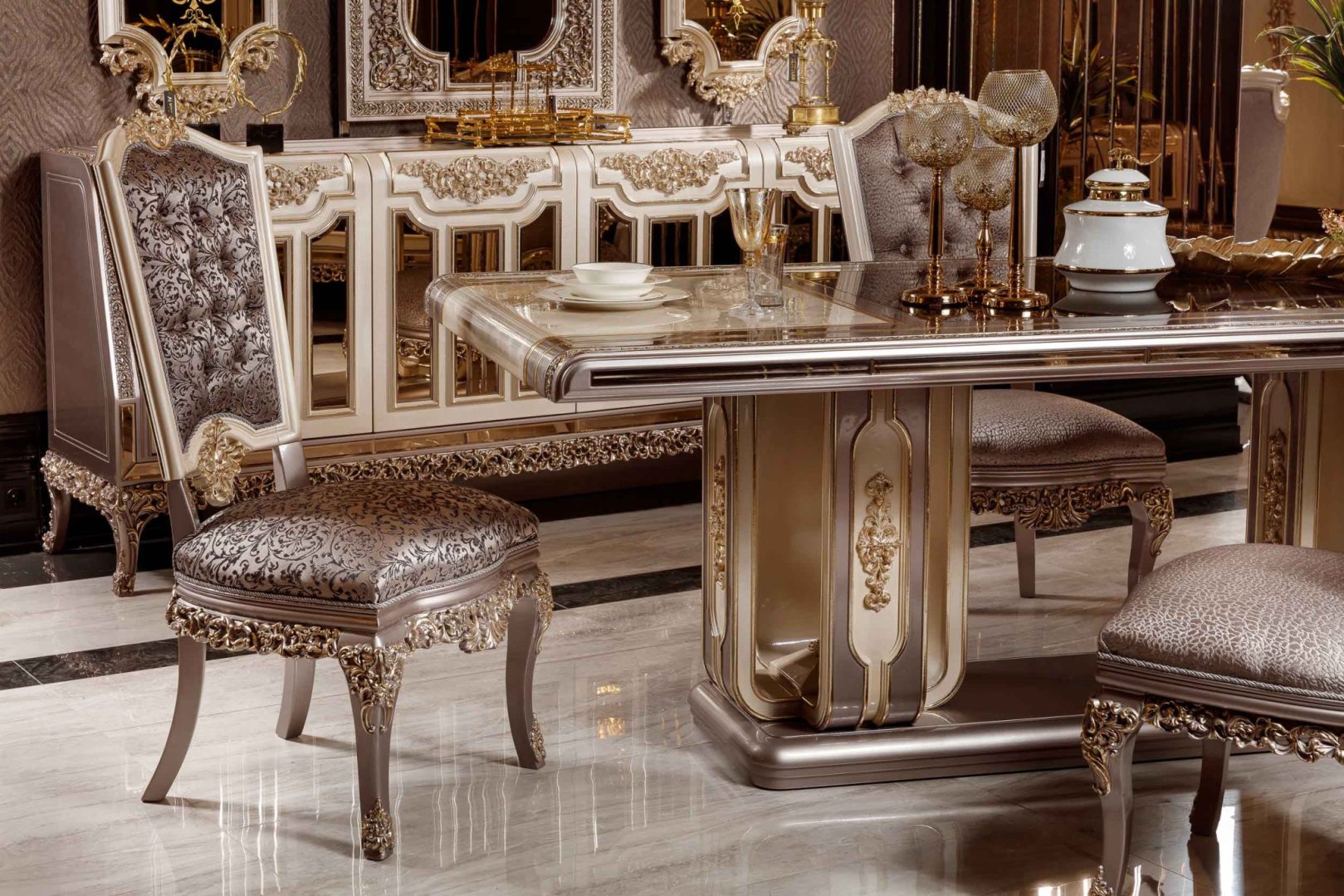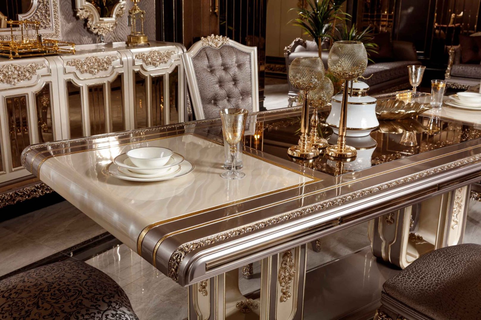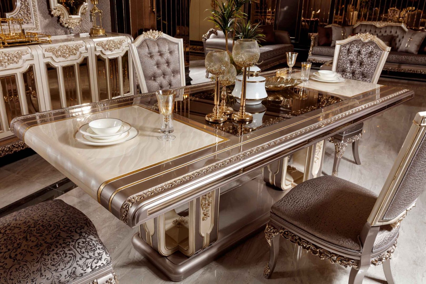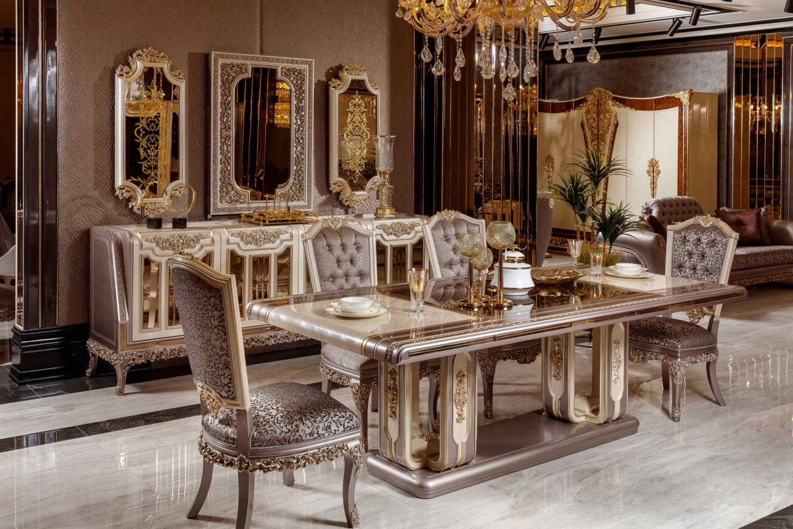 Vitale Luxury Klasik Yemek Odası, ölçü dengesi, malzeme kalitesi ve sade çizgileriyle yaşam alanlarına şık ve bütüncül bir karakter kazandırır.